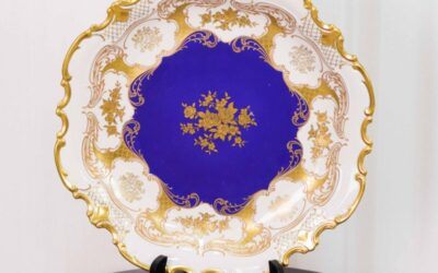 Декоративная тарелка с кобальтовым зеркалом и золочёным орнаментом