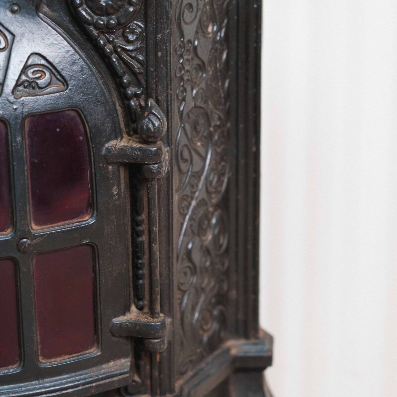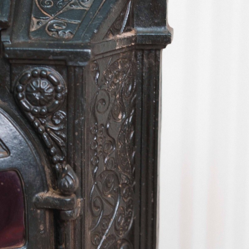 Эта чугунная печь представляет собой выразительный образец декоративного литейного искусства конца XIX — начала XX века.