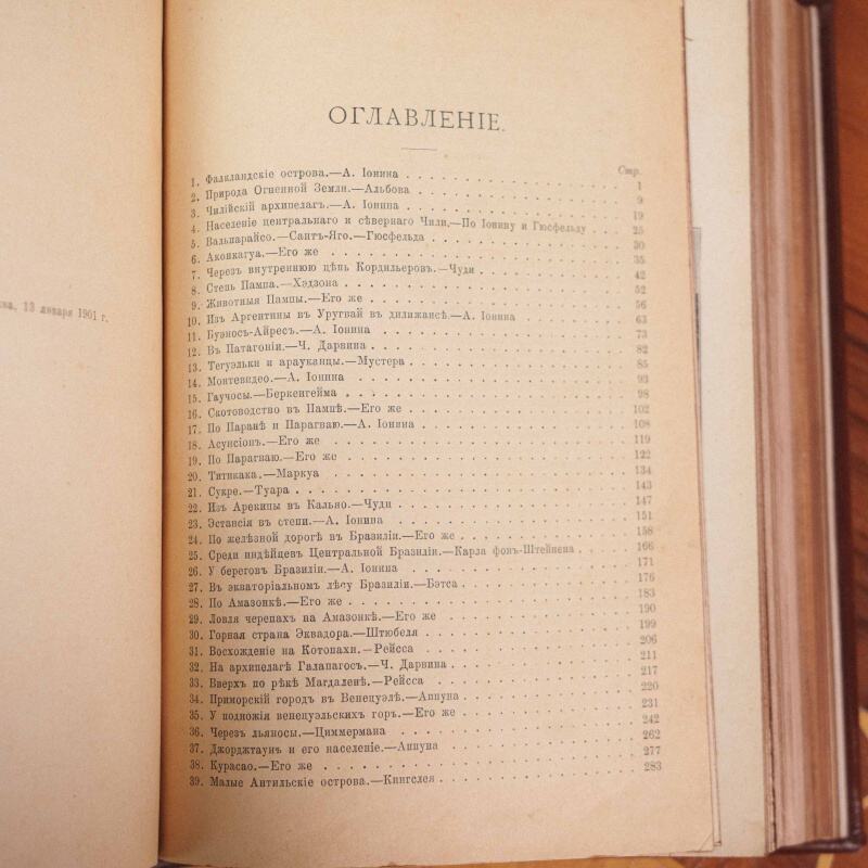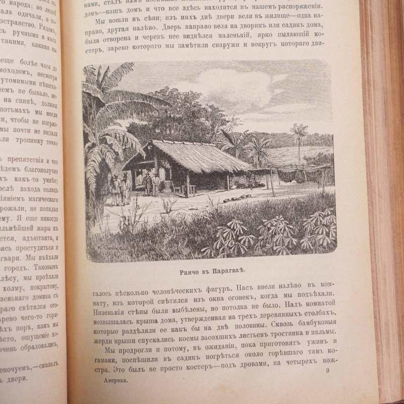 «Америка. Иллюстрированный географическій сборникъ», изданный в Москве в 1901 году. Данный экземпляр представлен в роскошном подарочном переплете из натуральной кожи с художественным тиснением.