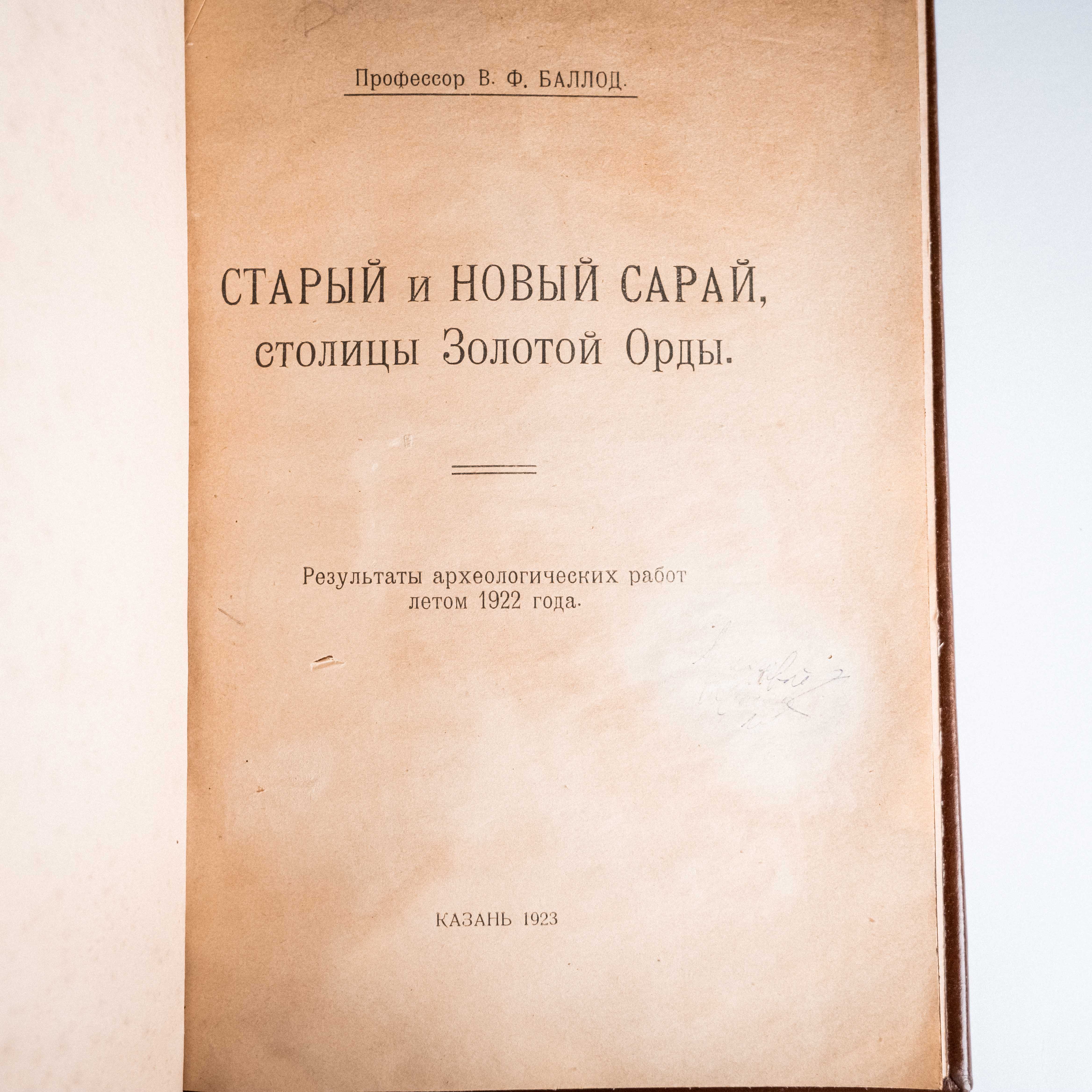 Перед вами редкое научное издание, созданное по горячим следам археологических открытий. Книга написана археологом и специалистом по восточному искусству Францем Баллодом по результатам экспедиций 1922 года в Нижнем Поволжье, где велись масштабные исследования городов Золотой Орды — Старого и Нового Сарая.