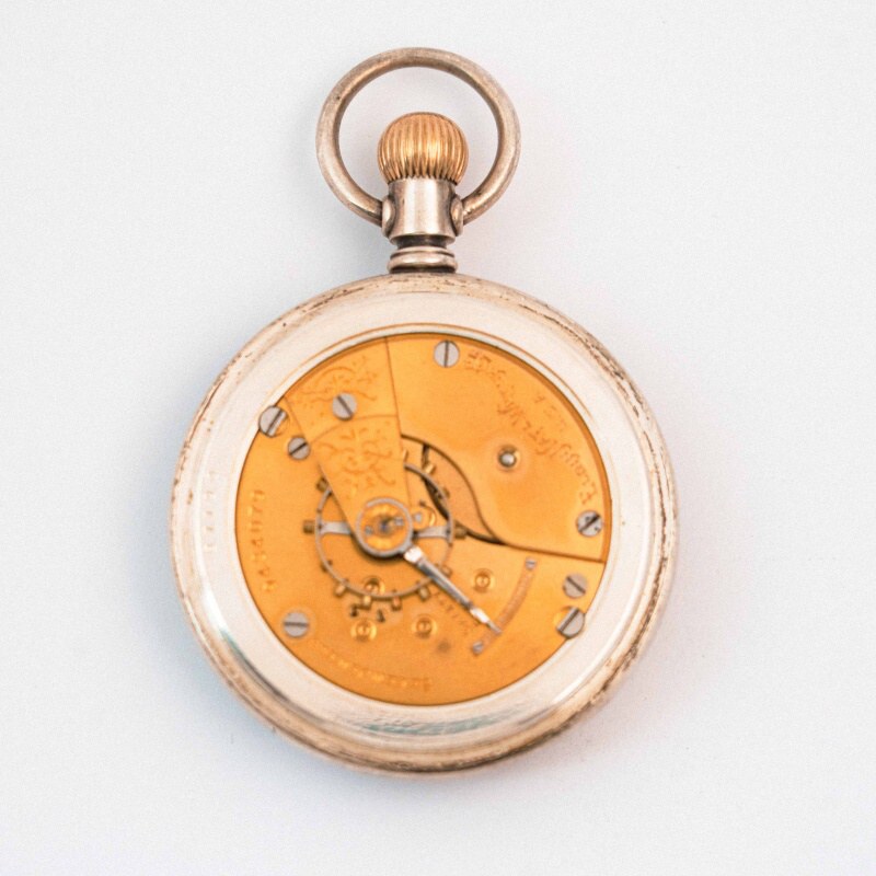 Вес 168 грамм и диаметр 60 мм подтверждают, что перед вами по-настоящему массивный, «мужской» экземпляр. Для карманных часов это внушительные параметры, подчеркивающие их статусность и долговечность. Материал (Серебро 925): Использование стерлингового серебра (Sterling Silver) говорит о высоком качестве. В начале XX века многие корпуса Elgin делались из никеля (Silverine) или имели только тонкое золотое напыление. Корпус из чистого серебра 925 пробы значительно повышает коллекционную и материальную ценность часов.