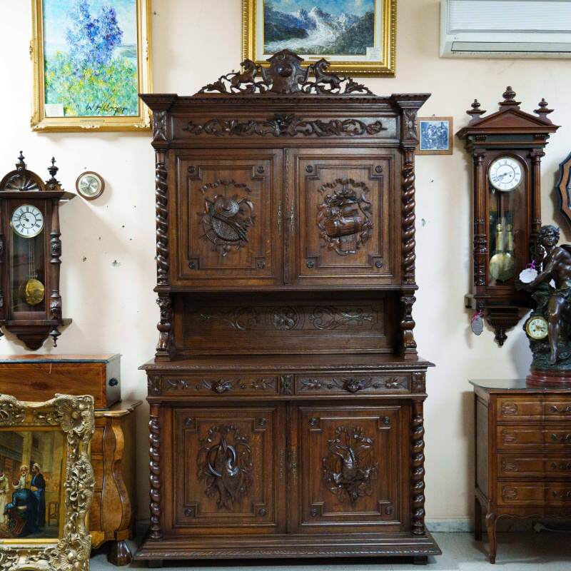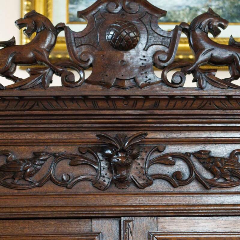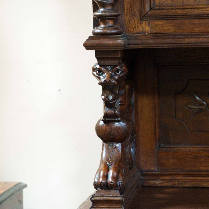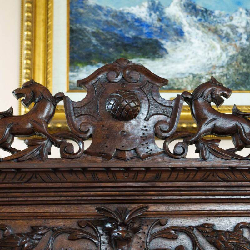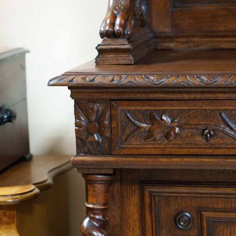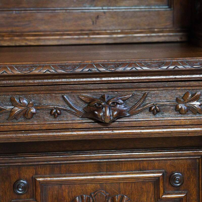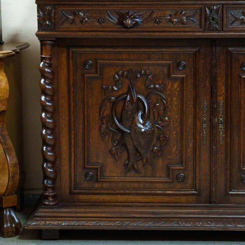 Этот монументальный двухъярусный буфет является ярким и впечатляющим образцом стиля Неоренессанс (конец XIX века). Он воплощает в себе величие, ручное мастерство и богатый декоративный дизайн.