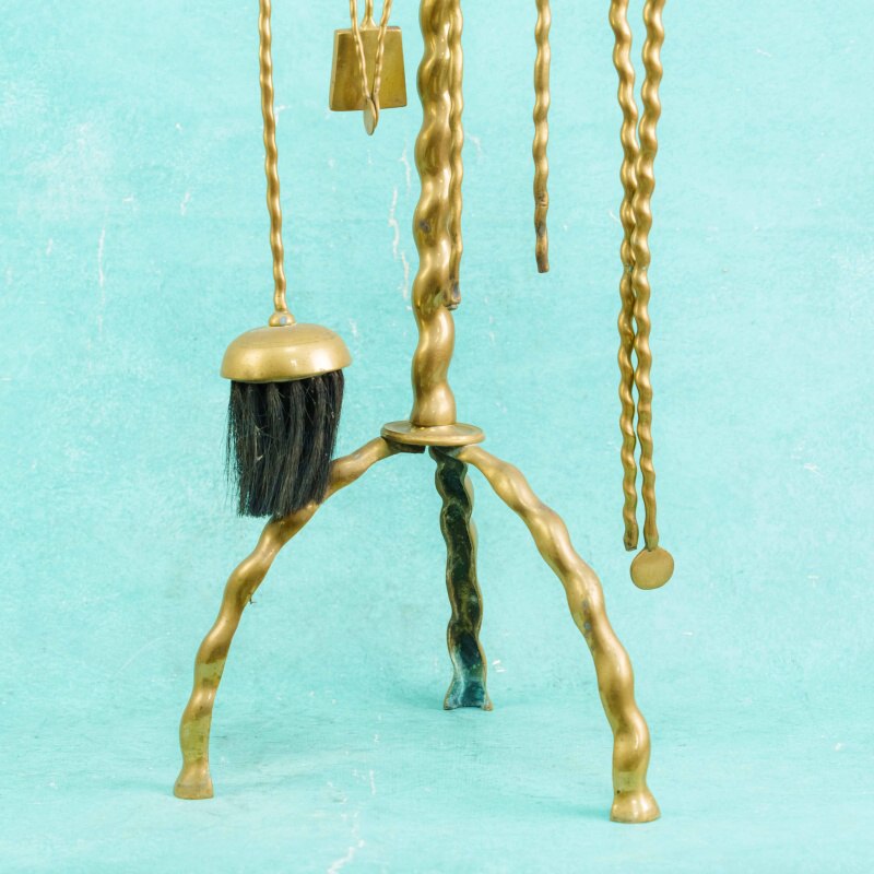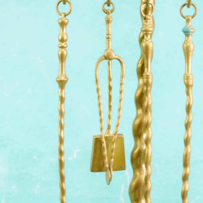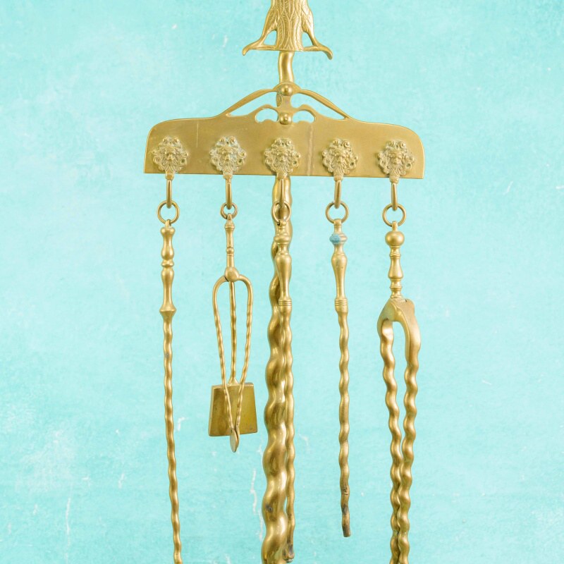 Латунь сохранила выразительную патину, придающую предмету подлинную антикварную глубину и историческое звучание. Набор отличается не только декоративной привлекательностью, но и функциональностью, что делает его достойным дополнением к классическому камину, загородной резиденции или интерьеру в стиле историзма.