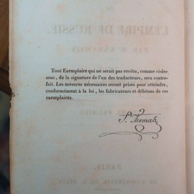 Антикварное издание Н.М. Карамзина: «История государства Российского (HISTOIR de L’EMPIRE DE RUSSIE)», с 1 по 8 том. Париж. 1819 — 1820 гг.
