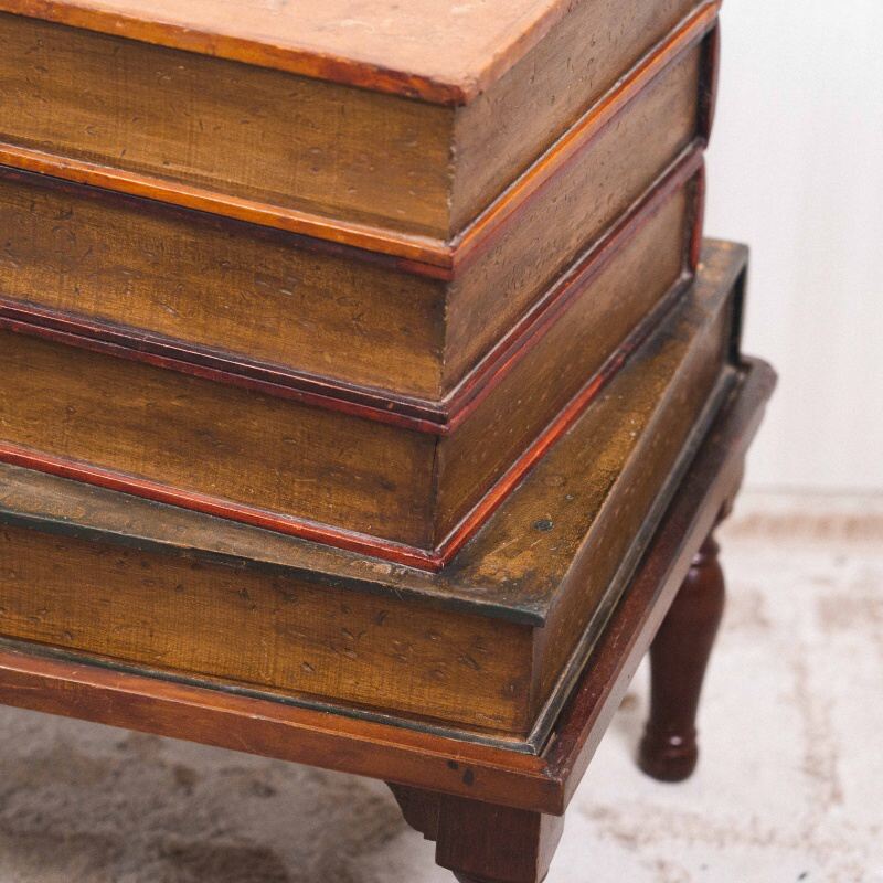 Внутреннее отделение, как правило, отделано деревом или бархатистой тканью, создавая атмосферу камерного изыска и приватности. Внешний декоративный замысел — имитация книжной стопки — превращает предмет не только в практичный бар, но и в эффектный интерьерный акцент, способный органично вписаться в кабинет, библиотеку, гостиную или винтажный интерьер.