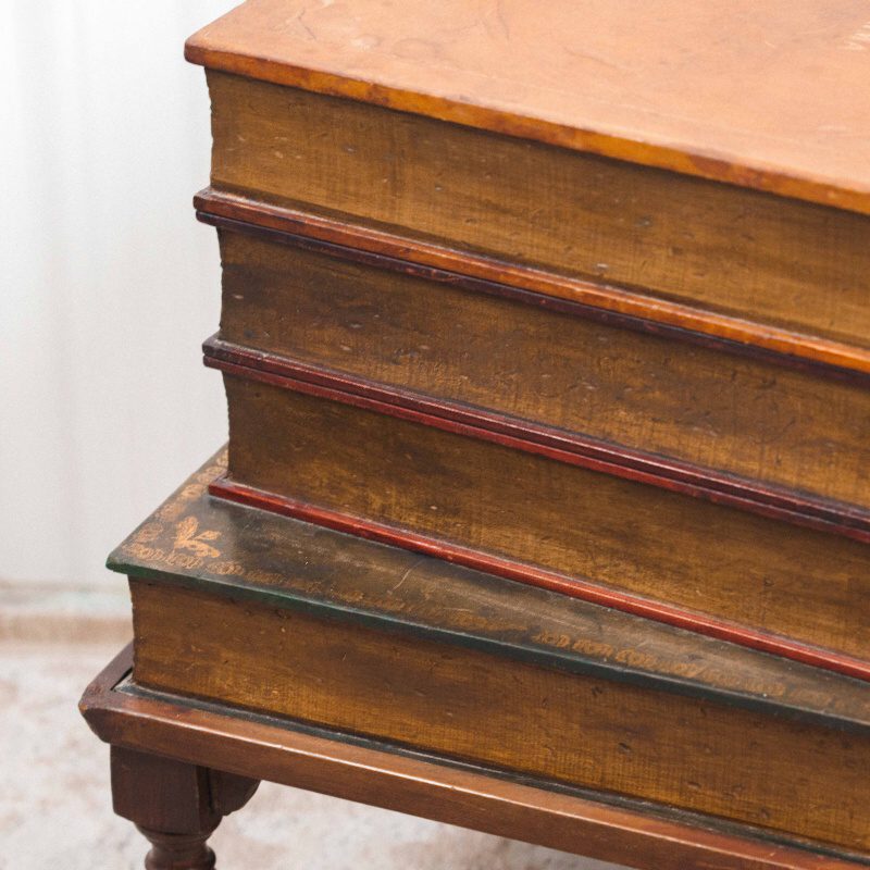 Антикварный бар выполнен в виде изящного декоративного объекта, стилизованного под стопку массивных старинных книг, что придаёт ему характер необычной интерьерной находки и подчёркивает утончённый вкус владельца.