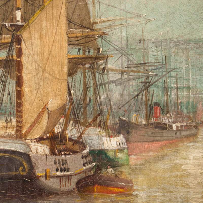 Представленная картина условным названием «Bateaux dans le port de Rouen» «Лодки в порту Руана» обладает антикварной, коллекционной и художественной ценностью, и может стать достойным экземпляром в музейных и частных коллекциях.