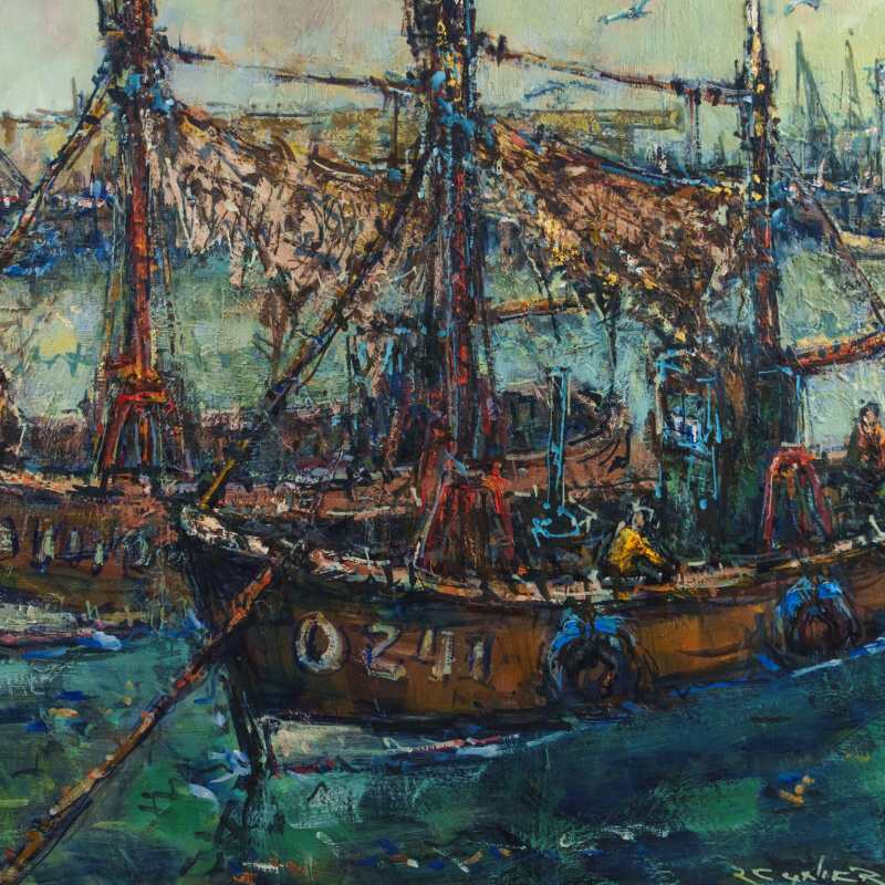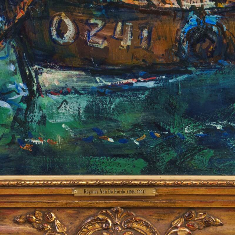 Шикарный пейзаж со старинными рыбацкими лодками. Это произведение известного бельгийского художника Regnier Van De Herde называется «Bateaux de Peche» («Рыбацкие лодки»,