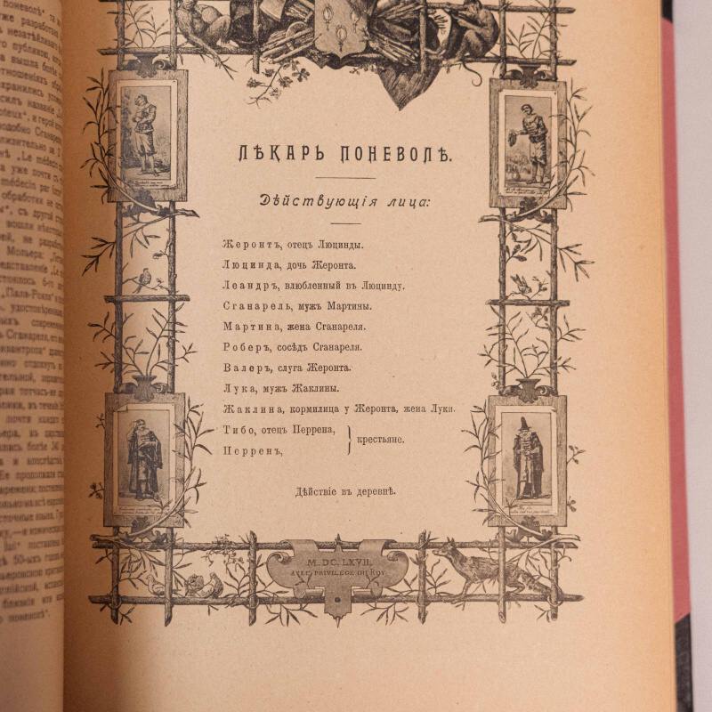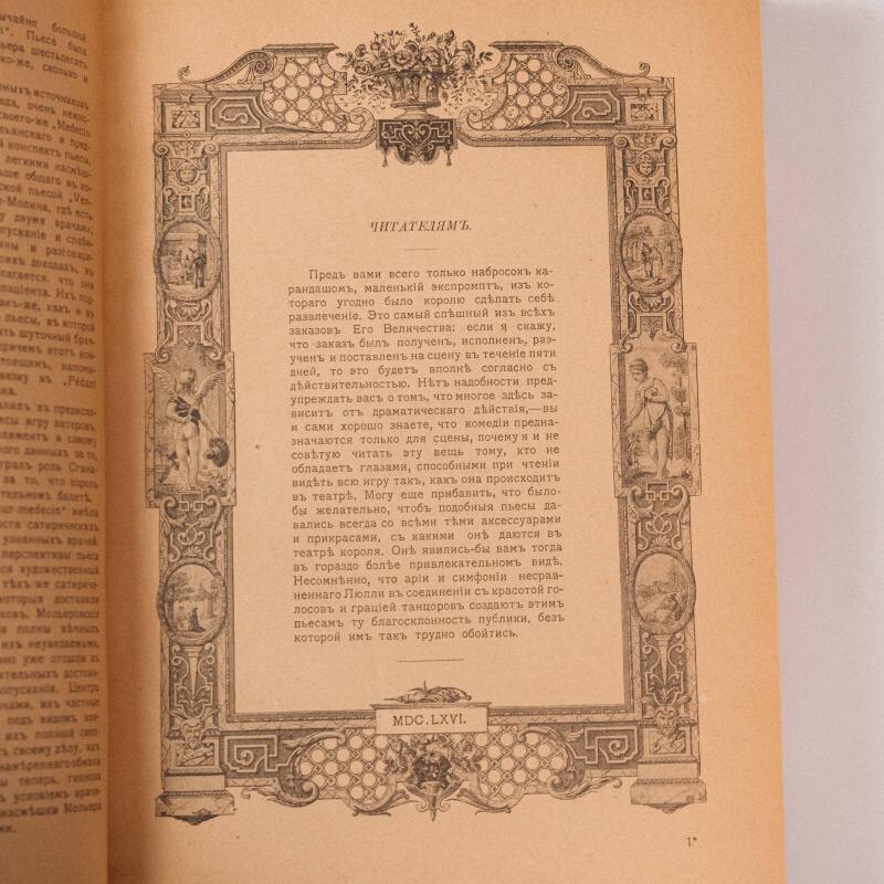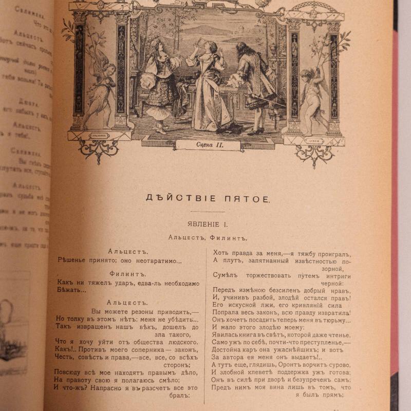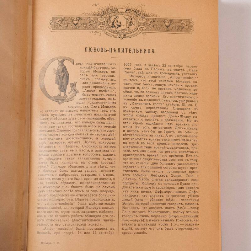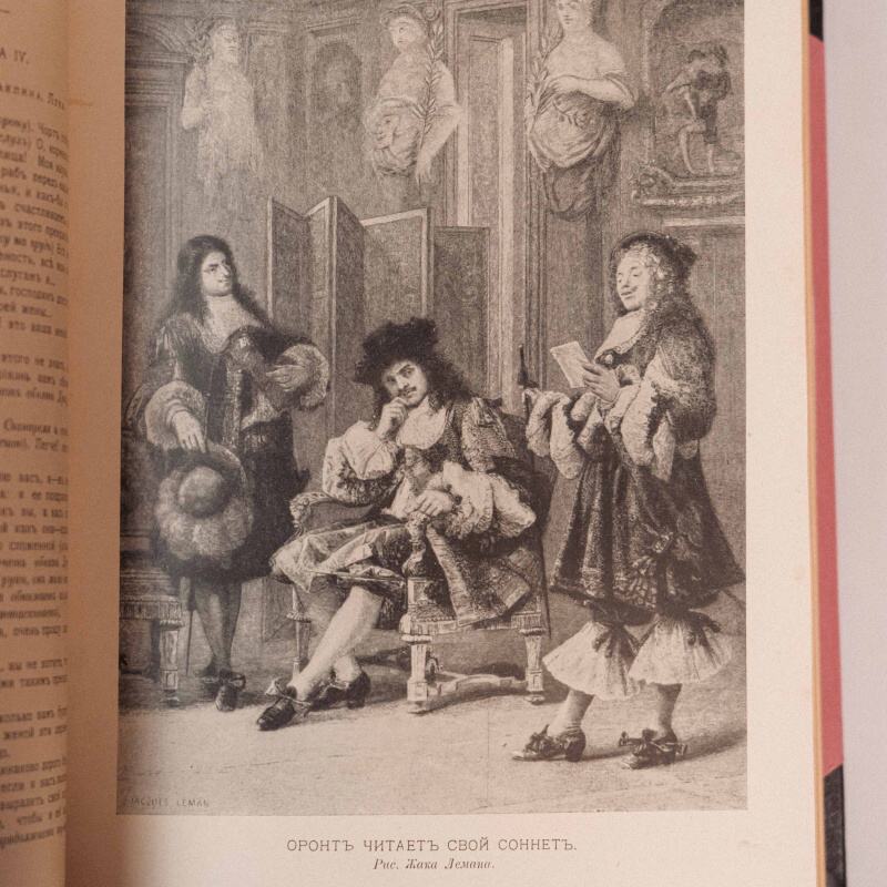 Издательский дом «Ф.А. Брокгауза и И.А. Ефрона» был организован в Санкт-Петербурге владельцем типографии и книгопродавцем Ильей Абрамовичем Ефроном (1847-1917) совместно с книгоиздательской фирмой «Ф.А. Брокгауз» (Лейпциг). Большой известностью пользовались серийные издания «Брокгауза и Ефрона» в 20-ти томах – богато иллюстрированные собрания сочинений пяти великих писателей. Это книги со вступительными статьями и примечаниями. В серию вошли: собрание сочинений Ф. Шиллера в 4-х томах с историко-литературными комментариями, эстампами и рисунками, Санкт-Петербург (1901-1902 гг.); У. Шекспира в 5-ти томах, где книги впервые проиллюстрированы полным циклом Джоном Джилбертом, великим драматургом и известным иллюстратором, Санкт-Петербург (1902-1904 гг.); Дж. Байрона в 3-х томах – это первое полное Собрание сочинений Байрона на русском языке, богато иллюстрировано, Санкт-Петербург (1904-1905 гг.); А. Пушкина в 6-ти томах, где собраны произведения гениального русского поэта, проиллюстрированные самыми знаменитыми художниками России – А. Н. Бенуа, Н. В. Кузьминым, и Н. В. Ильинным, Санкт-Петербург (1906-1911 гг.); Ж-Б Мольера в 2-х томах, великолепно иллюстрировано знаменитыми художниками Франсуа Буше, Жан Маро младший, Орас Берне, Санкт-Петербург (1915 г.) Особенно редкими считаются шестой том с сочинениями Пушкина и второй том с сочинениями Мольера, т.к. они выходили меньшим тиражом и позже по времени, чем остальные тома этих двух собраний сочинений, кроме того, имеется информация, что большая часть напечатанного тиража шестого тома А.С. Пушкина и второго тома Мольера была утрачена в результате крупного пожара.