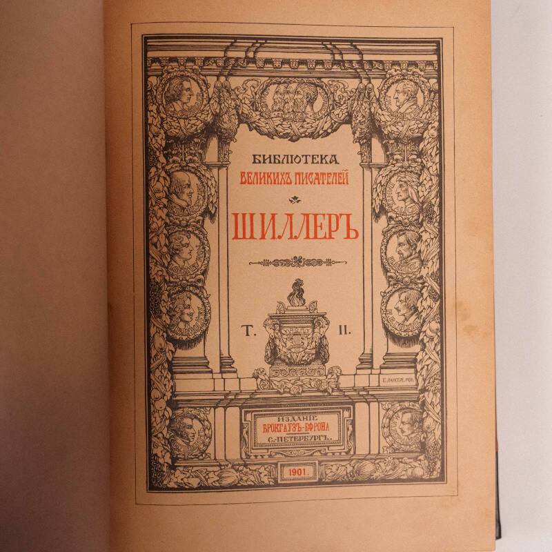 Издание в новых, стилизованных под эпоху переплетах, корешки из кожи с золотым тиснением. Книги выпущены Акционерным издательским обществом «Ф.А. Брокгауз – И.А. Ефрон». Книги подготовлены к печати известными литературоведами и художниками, под редакцией Семена Венгерова. Текст книги напечатан в дореформенной графике второй половины XIX века, на русском языке. Пагинация классическая европейская, постраничная. В серию вошли: собрание сочинений Ф. Шиллера в 4-х томах, Санкт-Петербург (1901-1902 гг.); У. Шекспира в 5-ти томах, Санкт-Петербург (1902-1904 гг.); Дж. Байрона в 3-х томах, Санкт-Петербург (1904-1905 гг.); А. Пушкина в 6-ти томах, Санкт-Петербург (1906-1911 гг.); Ж-Б Мольера в 2-х томах, Санкт-Петербург (1915 г.).