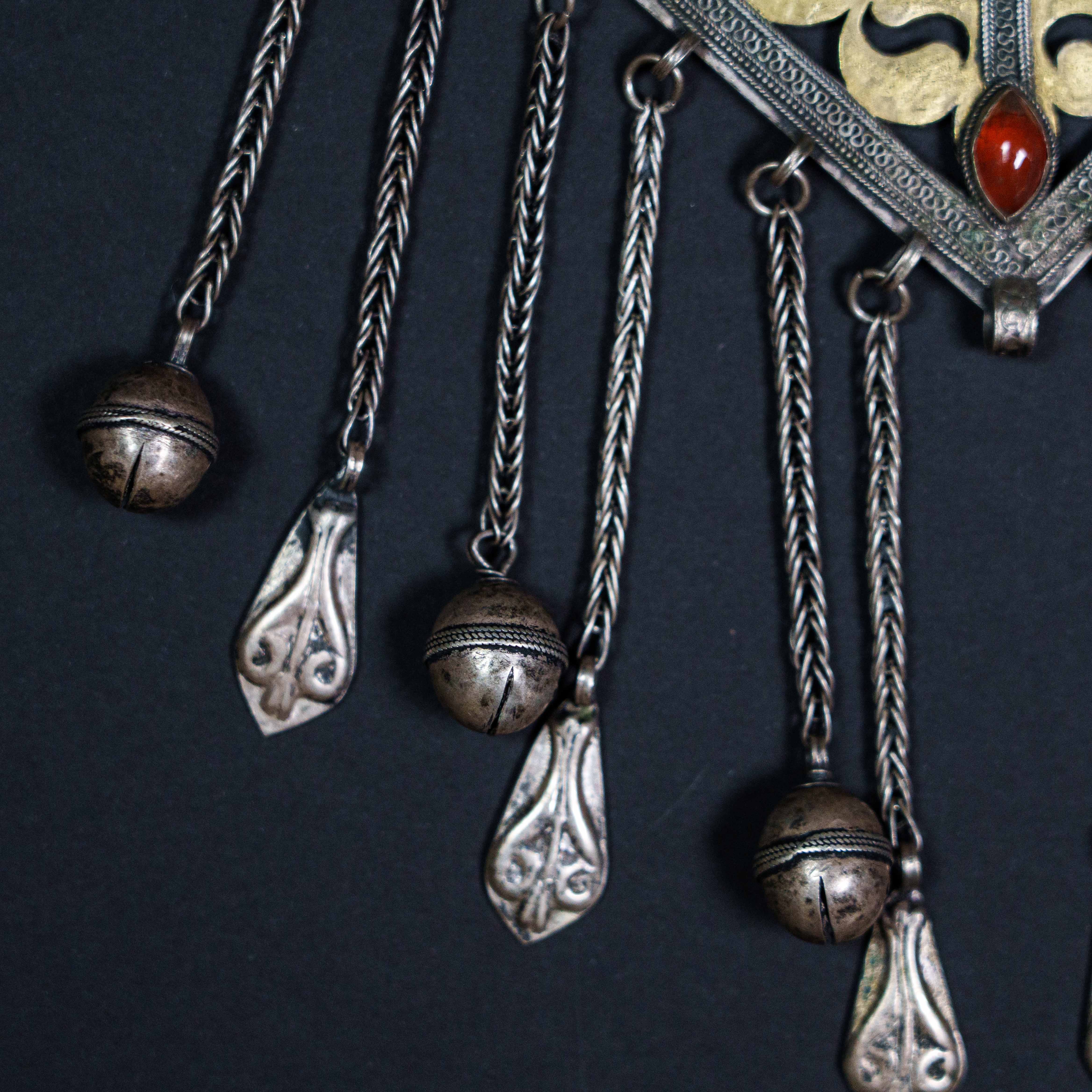 Женские ювелирные украшения Туркменистана, получили наибольшее распространение на территории Средней Азии, Южного и Западного Казахстана. История казахского ювелирного искусства теряется в глубине веков. Представители тюркских племен придавали своим украшениям сакральный и даже магический смысл, наделяя их качествами оберегов. И часто внушительные ювелирные изделия из серебра, дополненные полудрагоценными камнями, обозначали переход человека от одного этапа жизни к другому. Поэтому и изготавливали украшения с особым трепетом и мастерством. Будь то өңіржиек для незамужних девушек или же защитные амулеты тұмар — каждое из них становилось настоящим произведением искусства. И даже сейчас, когда мы живем в эпоху минимализма, узорные казахские украшения и мотивы не теряют своей актуальности. Лишь, наоборот, приумножая ее и прославляя аутентичность и силу народа.