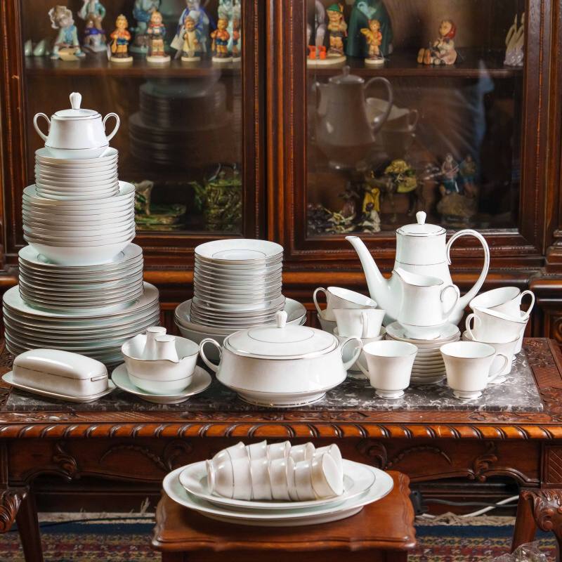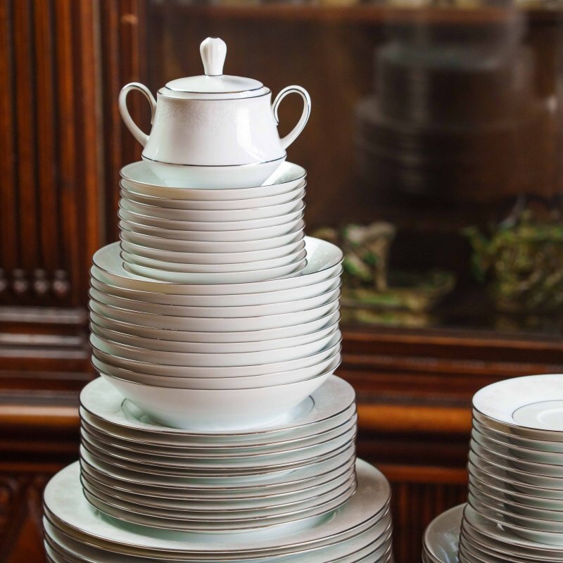 Фарфоровый столовый сервиз «Contemporary» от Noritake на 10 персон, произведённый на филиппинском филиале знаменитой японской мануфактуры, выполнен в сдержанном современном стиле с отсылкой к классическим формам.