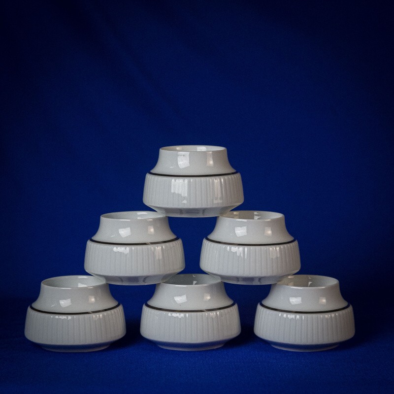 Рельефная фактура по нижней части чашек и предметов придаёт комплекту глубину и характер, а аккуратная золотая линия добавляет лёгкий акцент роскоши — без излишней вычурности. Формы изящные и продуманные: удобные ручки, гармоничные пропорции, практичность в использовании.