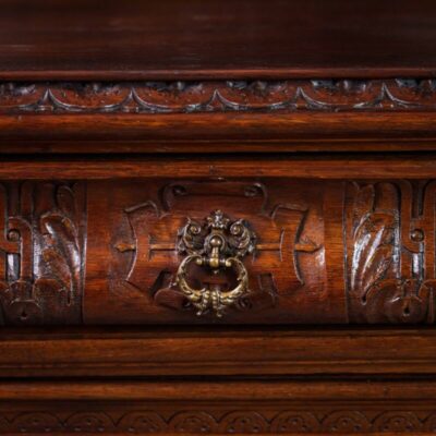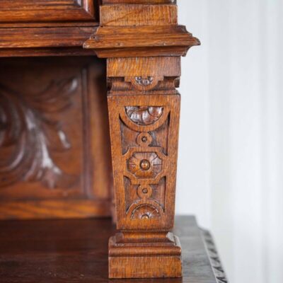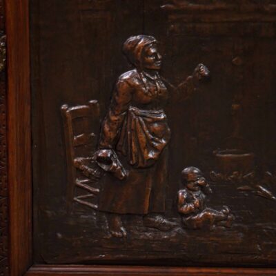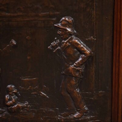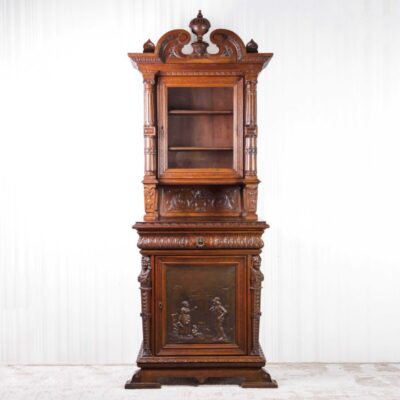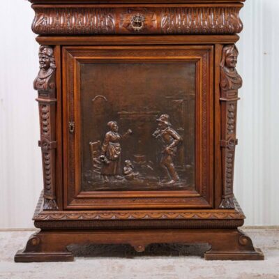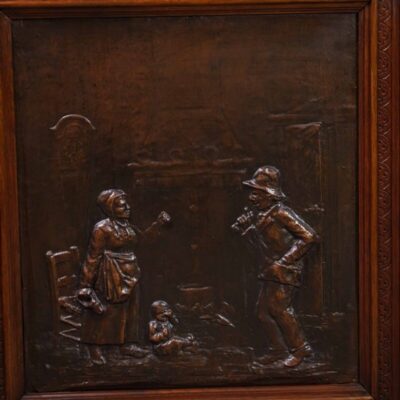 Редкий чайный сервиз на шесть персон, созданный на знаменитой парижской мануфактуре Samson, которая славилась своими изысканными предметами в стиле лучших европейских фабрик XVIII века. Сервиз выполнен из тонкого белого фарфора с обрамлением по краям в виде золотого бордюра. Декор представлен многофигурными сценами с обнажёнными путти и амурчиками, изображёнными в различных аллегорических занятиях: игра на музыкальных инструментах, охота, садовые и сельские работы, подношение даров. Роспись выполнена в технике «гризайль» — живопись в одном цвете (коричневых или серых тонах), имитирующую графику и рельеф, что придаёт изображению графичность и элегантную утончённость. Золочение на ручках, носиках и ободках дополняет изысканный стиль и подчёркивает статус сервиза. Сервиз состоит из чайника цилиндрической формы, изящного молочника, сахарницы и большой чаши, а также шести пар чашек с блюдцами. Все предметы выдержаны в едином художественном стиле, что свидетельствует о высокой культуре производства мануфактуры Samson.