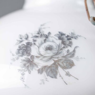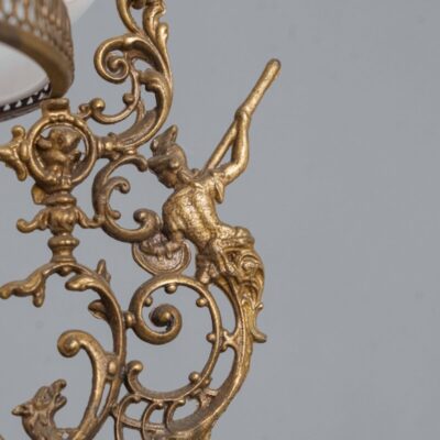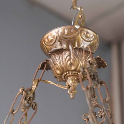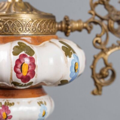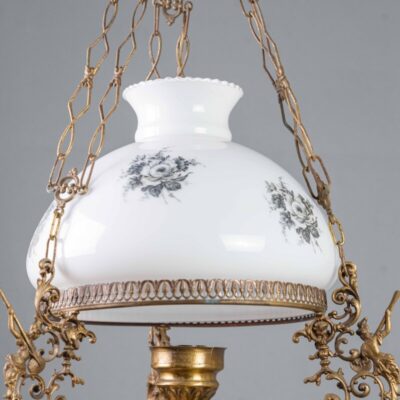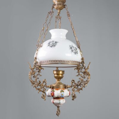 Антикварная подвесная люстра из стекла и фарфора с бронзовым декором