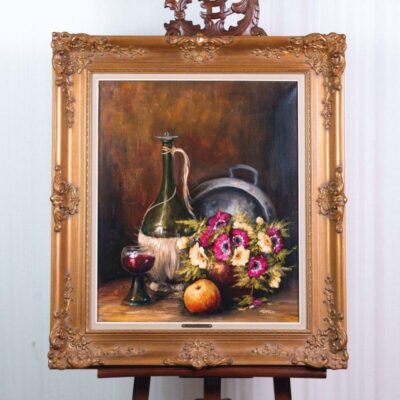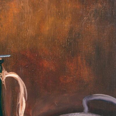 Прекрасный образец французского ювелирного искусства — чаша с ручками в виде двуглавых орлов, выполненная из серебра 950 пробы в мастерской Eugene Lefebvre, Франция. Изделие выполнено в оригинальном стиле, форма изделия выражает «мужественность» и благородство, утонченные детали дополняют композицию. Каемка чаши украшена рельефным орнаментом, изображавшим мелкую листву расположенную близко к друг другу. Такой растительный узор, мягко подчеркивает изысканность и возвышенность предмета. Ручки выполнены в виде двуглавого орла, одна голова смотрит налево, другая направо, они несут в себе символ уравновешенности, гармонии и понимания. Не зря двуглавый орел изображается на гербах различных королевств и государств, это олицетворения мудрости и принятие взвешенных решений. В этой чаши, они символизирую принятие двух крайностей в личности человека, и возвышенного благородства, которое всегда требует от честности перед самим собой. Орлы имеют проработанные детали, их фигуры напитаны движением и живостью, изгибы и анатомия была прекрасно передана мастером. Из под «ленты» на шеях орлов, изящно изгибаются перья и овивают края чаши.