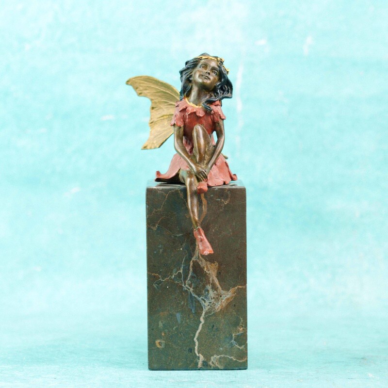 Скульптура установлена на массивном каменном основании с красивым природным рисунком прожилок. Предмет предназначен для настольного или кабинетного экспонирования и представляет собой гармоничный интерьерный акцент в романтическом декоративном стиле.