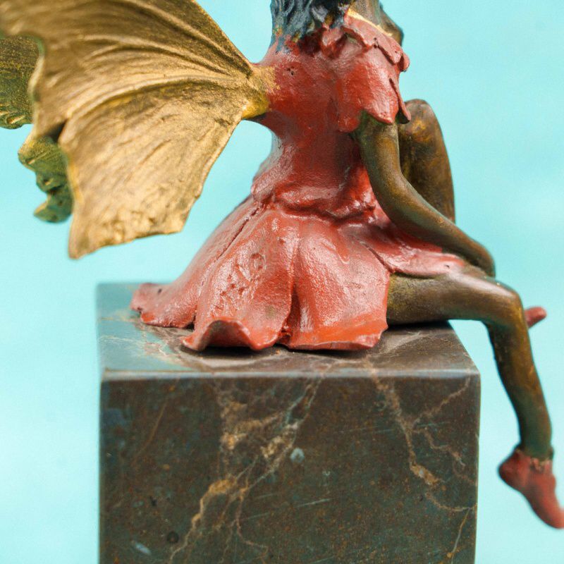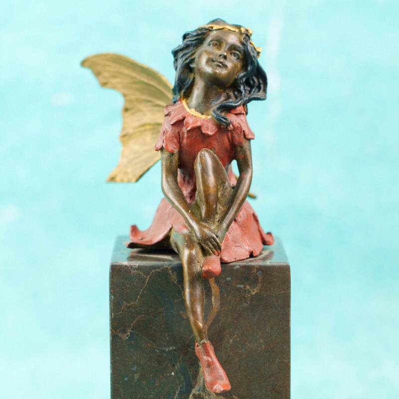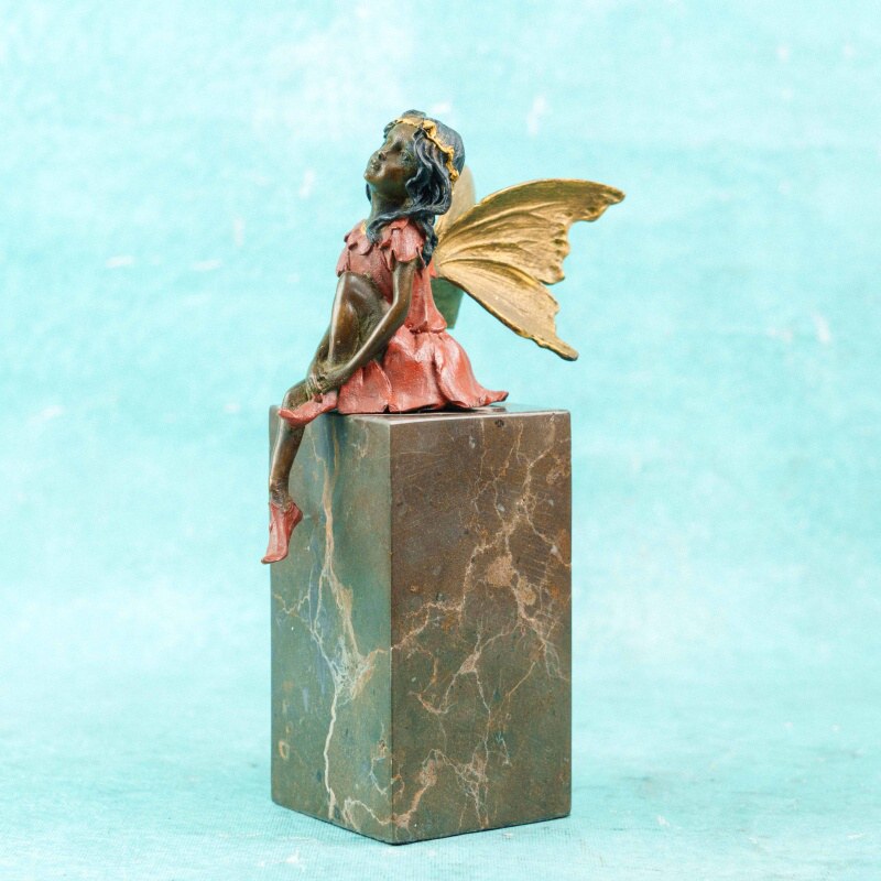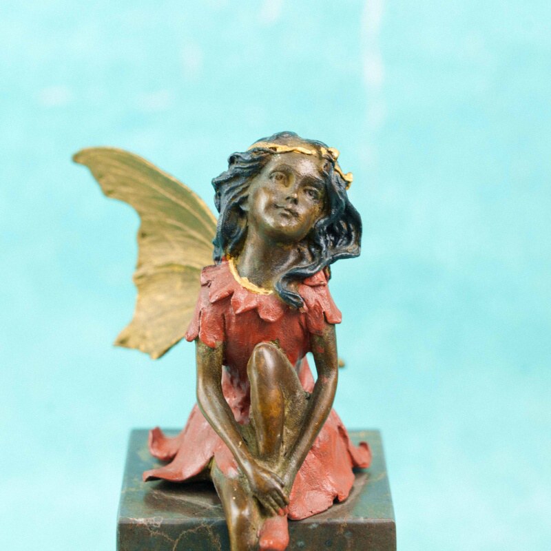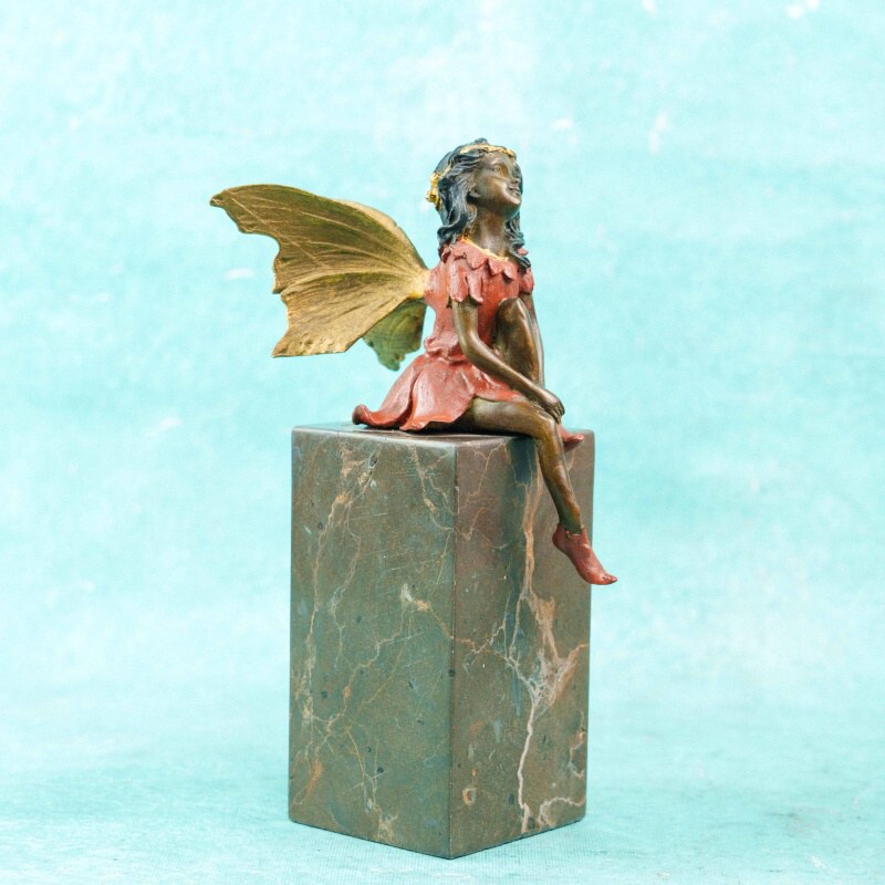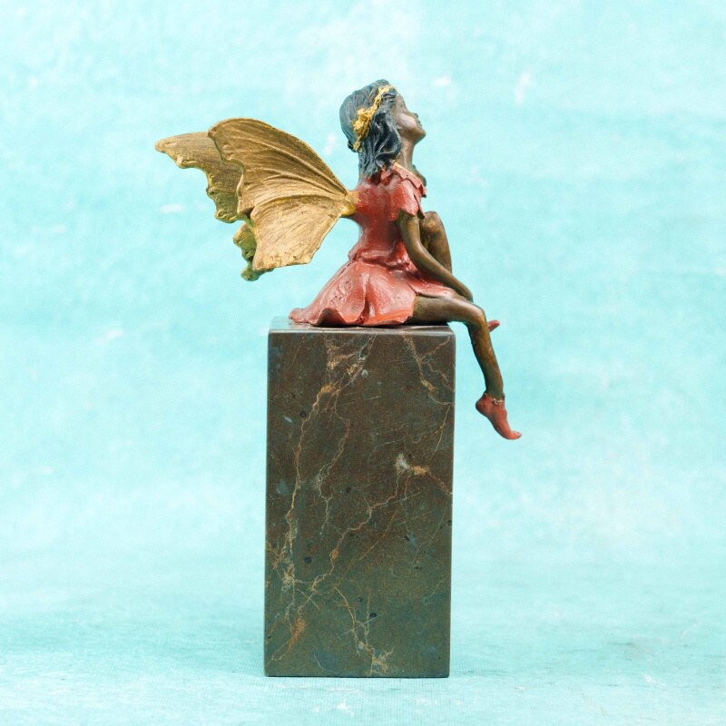 Статуэтка изображает юную фею, лежащую в спокойной, мечтательной позе, опираясь на локти и поддерживая щёку рукой. Образ передаёт ощущение тишины, лёгкой задумчивости и сказочной поэтики. Фигура одета в терракотово-красное платье с выразительно смоделированными складками.