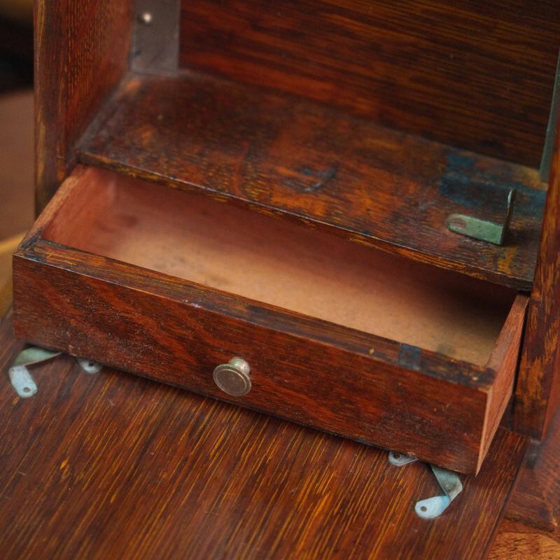 Компактный дорожный секретер с откидной передней панелью, которая служит рабочей поверхностью.