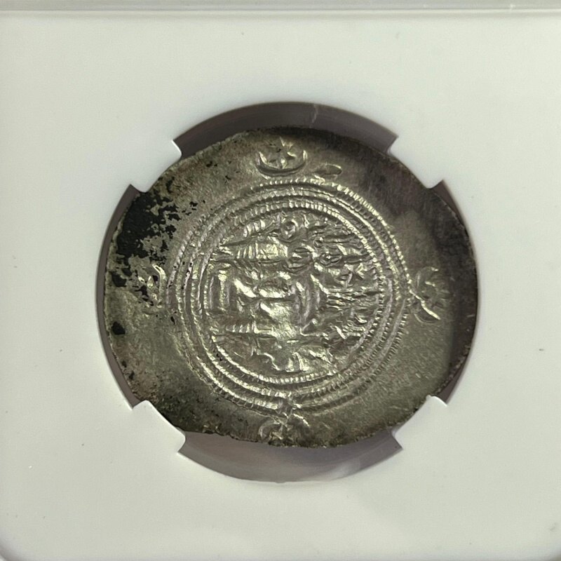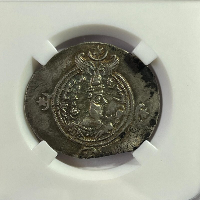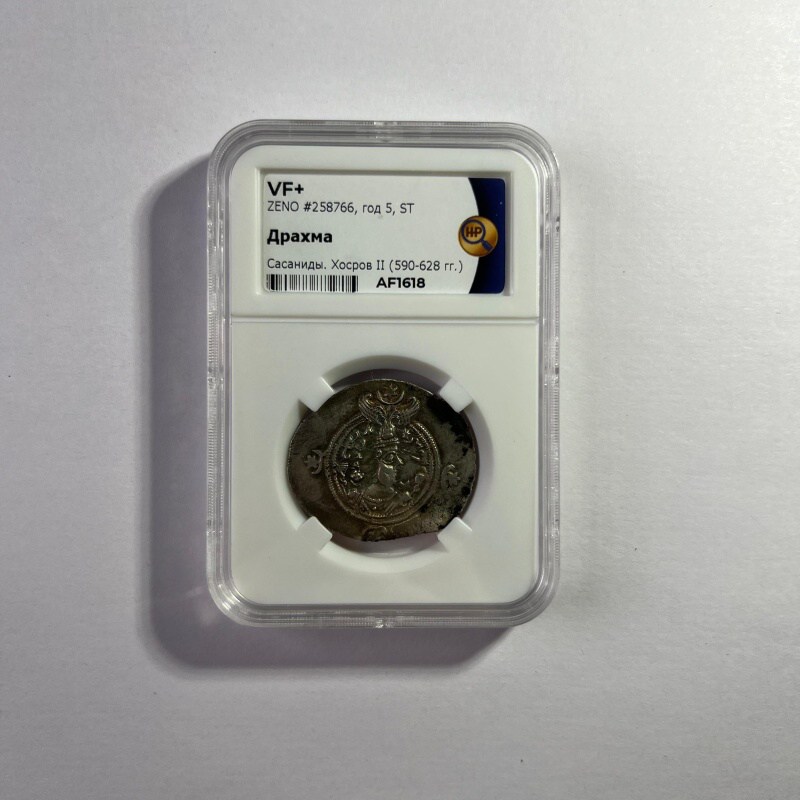 Происхождение Сасаниды. Хосров II (590-628 гг.). Оригинал с сертификатом подлинности. Уникальный номер сертификата подлинности – AF1618. Также данная монета имеет уникальный номер ZENO#258766.