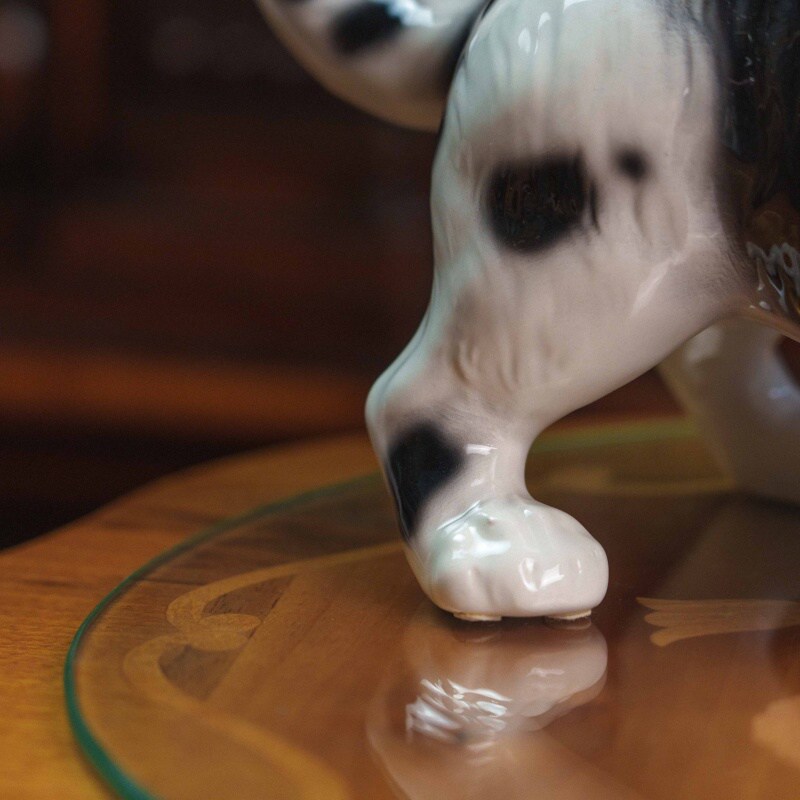Окраска выполнена в натуральной чёрно-белой гамме, с мягкой растушёвкой переходов и глянцевой глазурью, подчёркивающей рельеф шерсти.