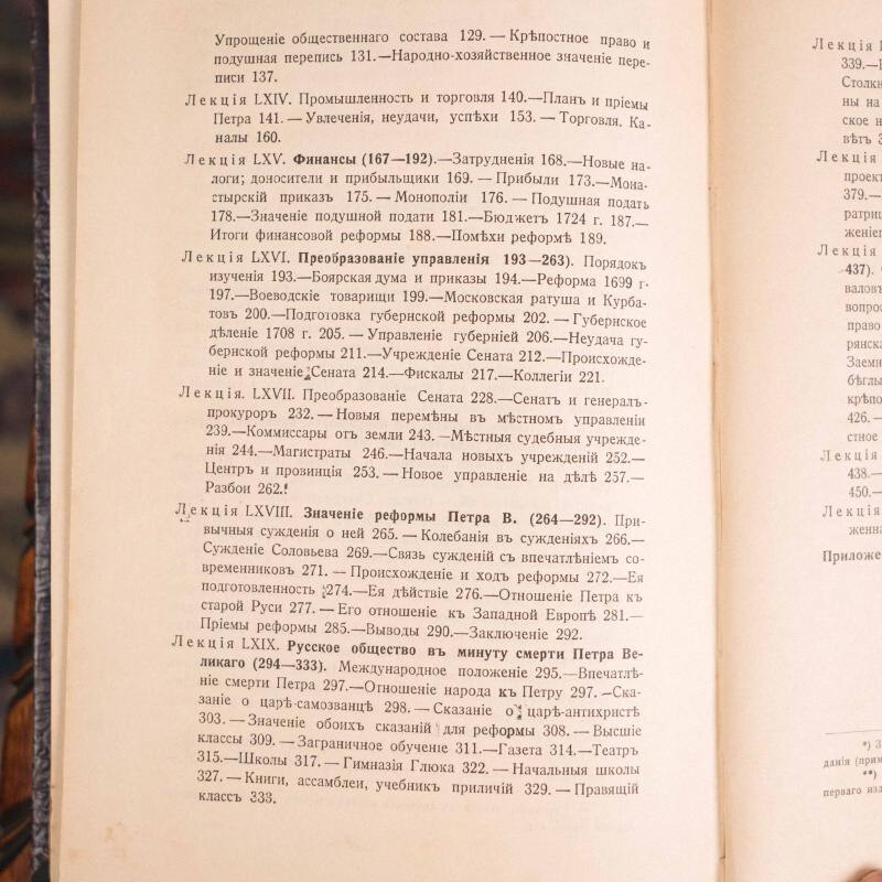 «Курс русской истории» В.О. Ключевского — фундаментальный 4-томный труд (первые тома вышли в 1904 г.), охватывающий развитие России с древности до начала XX века. Профессор Московского университета Ключевский рассматривал историю как процесс колонизации и развития человеческого общежития, заложив основы социальной истории. В основе лежит концепция четырех этапов, отслеживающих перемещение центра административной власти и рост территории (VIII—XIX вв.). Труд, создававшийся около 30 лет, сочетает глубокий научный анализ с блестящим стилем изложения, став классикой исторической литературы.