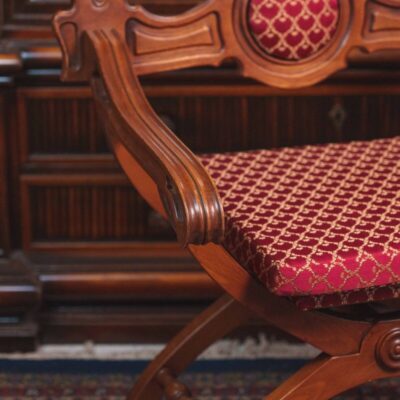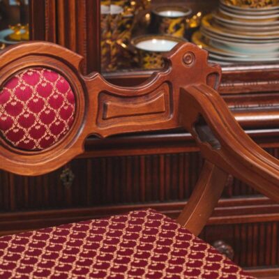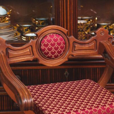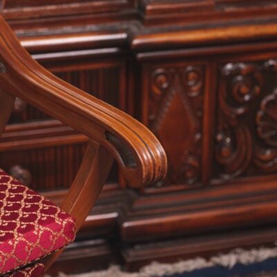 Великолепные кабинетные часы с консолью, созданные в стиле Людовика XIV. Декоративное оформление корпуса часов выполнено в технике Буль (Boulle). Декоративный стиль Буль был назван по имени французского придворного мастера-краснодеревщика Андре-Шарля Буля (1642-1732), работавшего в мастерских в Лувре. Данное гениальное изобретение декорирования мебели и предметов интерьера принесло ему всемирную славу. Изысканной формы деревянный корпус часов облицован полированным панцирем черепахи. Предмет богато декорирован бронзовыми накладками, которые изысканным декором выделились на фоне полированного панциря черепахи. Циферблат изготовлен в виде бронзового щитка, олицетворяя собой изображение солнца, между лучами которого расположены эмалевые медальоны с цифрами. Центральную часть циферблата украшает изображение герба. На механизме имеется клеймо часовой мастерской Raingo Freres.