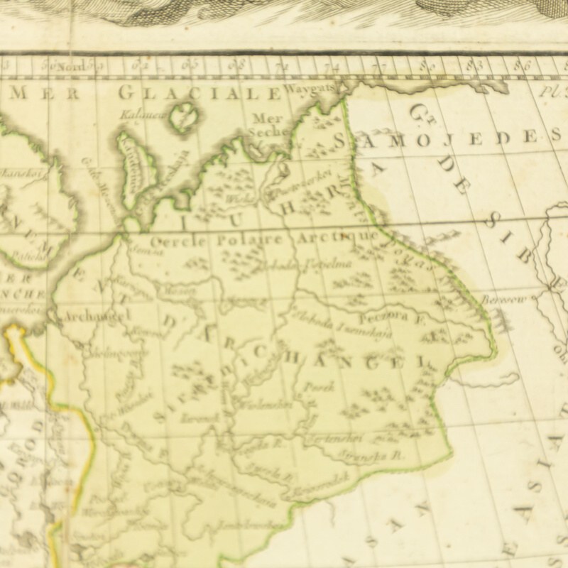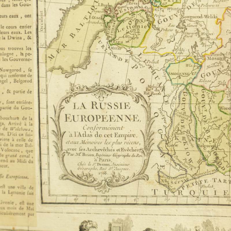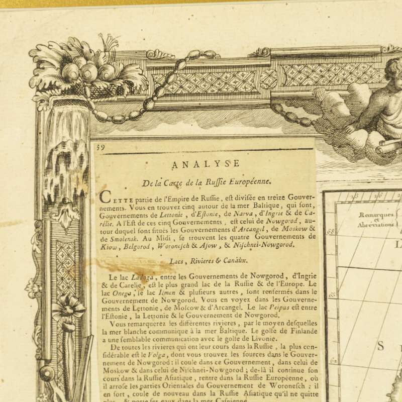 На полях размещен подробный текст с историко-географическим и административным описанием Российской империи на французском языке.