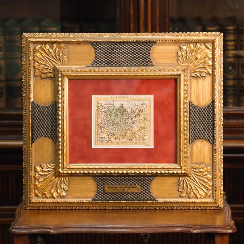 В верхней части листа помещен французский заголовок «Russie Europeene», что подчеркивает ориентацию карты на европейский книжный рынок; внизу – строгие английский картуш с названием «Russia in Europe», выполненный в характерной манере Дьюри – лаконичная рамка, чистая композиция, ясная типографика.
