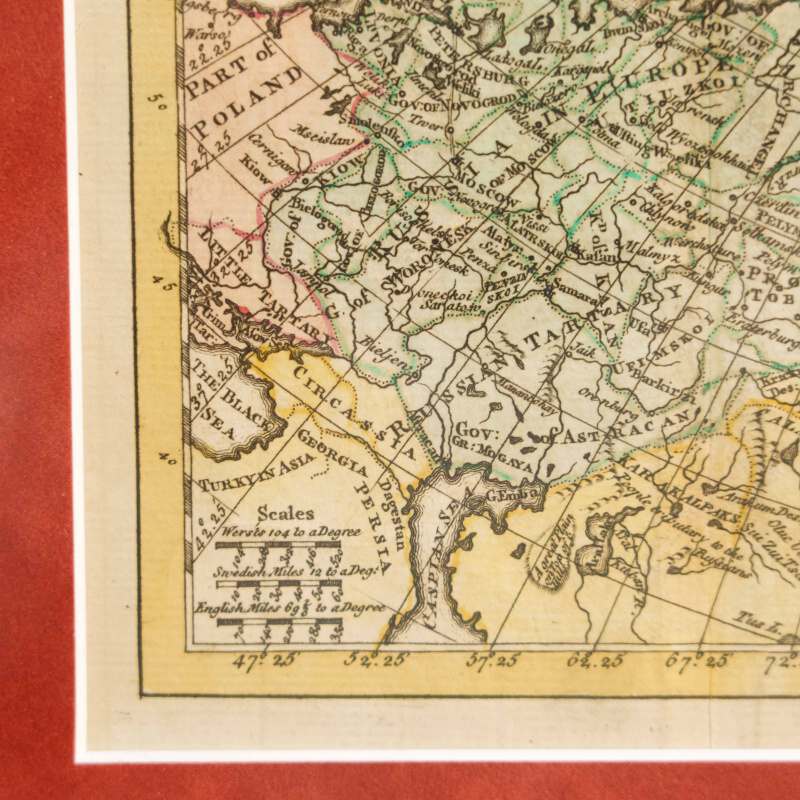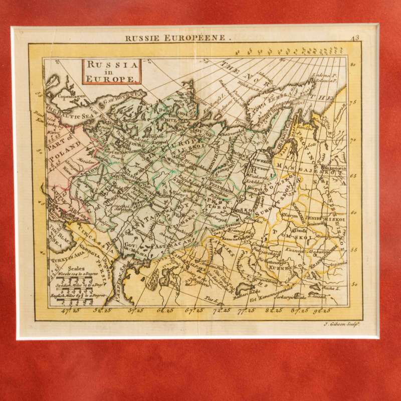 Гравировку выполнил знаменитый мастер John Gibson, признанный в то время одним из лучших исполнителей тонких географических карт. Карта представляет европейскую часть Российской империи во II половине XVIII века с высоким уровнем детализации: нанесены губернии, главные города, торговые маршруты, крупные реки, озера, побережья Каспийского и Белого морей, арктическая линия Новой Земли и обширные степные территории, примыкающие к южным границам империи.