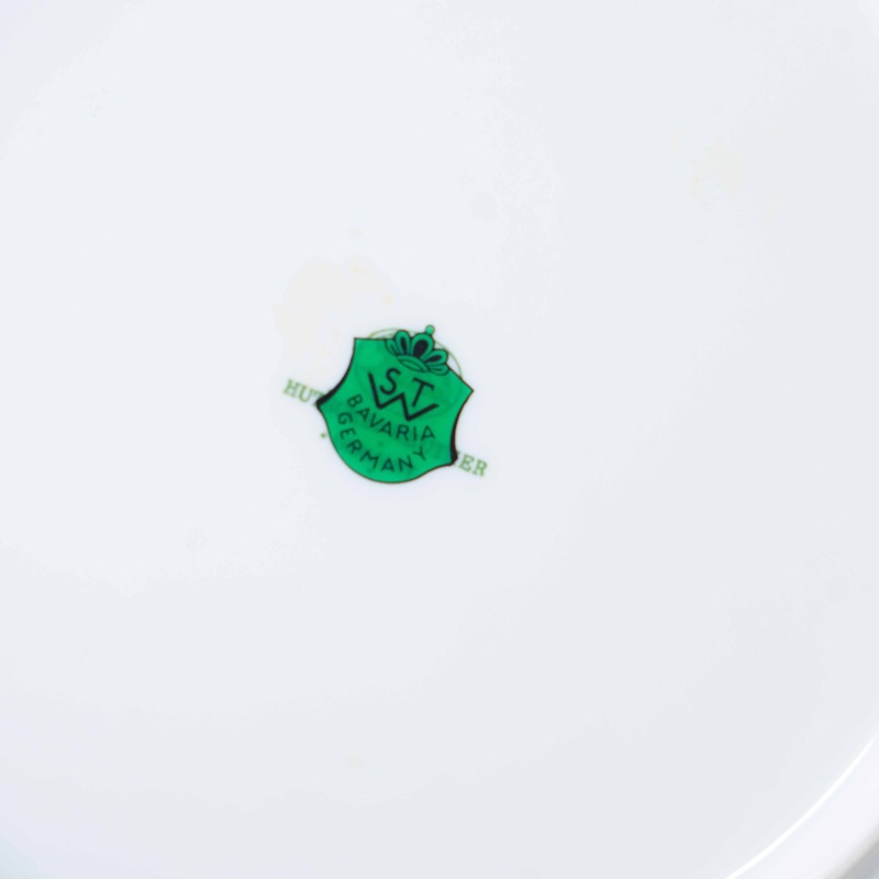 Лёгкая динамика шага и тонкая проработка анатомии лошади создают ощущение движения и достоинства. Белоснежное поле центральной части подчёркивает живописность композиции, а глубокий зелёный фон борта придаёт предмету выразительность и благородный характер. Клеймо Hutschenreuther Bavaria Germany подтверждает немецкое происхождение изделия и высокое качество исполнения.