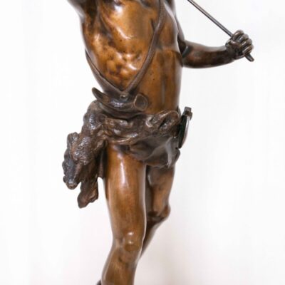 Верхняя поверхность комода оформлена роскошной мраморной столешницей кремового оттенка с естественным рисунком, плавно обработанной по периметру. Использование натурального мрамора придаёт изделию дополнительную монументальность, устойчивость и утончённость. Форма изделия подчёркивает принципы стиля рококо — изящество изгибов, легкость силуэта и внимание к декоративным деталям. Все пропорции выдержаны в соответствии с канонами французской мебельной классики. Комод установлен на ковре с традиционным восточным орнаментом, что подчёркивает его антикварный и коллекционный характер. Изделие является ярким образцом высокого искусства европейской мебельной школы XVIII века, идеально подходит как для частных коллекций, так и для музейных экспозиций.