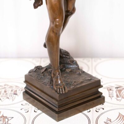 Представлен антикварный комод на высоких изогнутых ножках, выполненный в изысканном стиле Людовика XV, характерном для французской мебельной школы XVIII века. Корпус изделия изготовлен из ценных пород древесины и мебельной плиты с использованием художественного шпона, выложенного сложным геометрическим орнаментом. Фасад украшен тремя выдвижными ящиками, декорированными тонкой инкрустацией в виде цветочных композиций из различных пород древесины светлых и тёмных оттенков. Декоративные элементы придают комоду дополнительную выразительность и подчеркивают высокое качество работы мастеров. Каждый ящик оснащён элегантными бронзовыми ручками, стилизованными под растительные мотивы, выполненными методом художественного литья. По боковым сторонам корпуса проходят бронзовые накладки с детальной проработкой, завершающиеся бронзовыми башмаками на ножках. Данные элементы не только украшают изделие, но и усиливают его конструкцию.