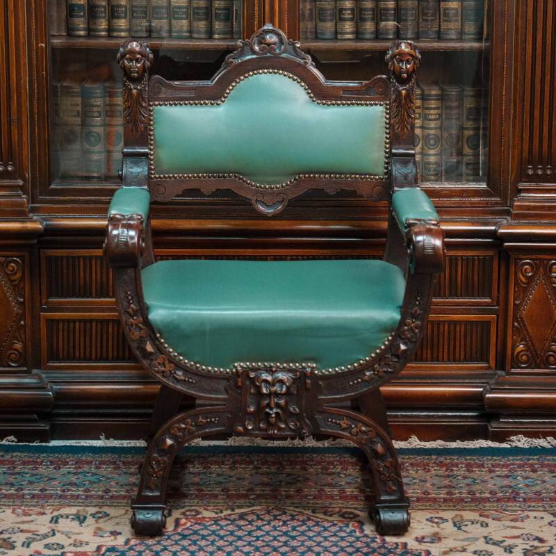 Такое кресло изначально предназначалось для кабинетов, библиотек или залов заседаний, где оно символизировало статус и авторитет владельца. Сегодня этот предмет является редким антикварным экземпляром, сочетающим в себе элегантность, историческую ценность и эстетическую мощь, способным стать центром внимания в классическом интерьере или коллекции старинной мебели.