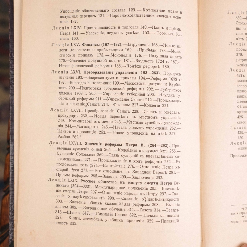 «Курс русской истории» В.О. Ключевского — фундаментальный 4-томный труд (первые тома вышли в 1904 г.), охватывающий развитие России с древности до начала XX века. Профессор Московского университета Ключевский рассматривал историю как процесс развития человеческого общежития, заложив основы социальной истории. В основе лежит концепция четырех этапов, отслеживающих перемещение центра административной власти и рост территории (VIII—XIX вв.). Труд, создававшийся около 30 лет, сочетает глубокий научный анализ с блестящим стилем изложения, став классикой исторической литературы.
