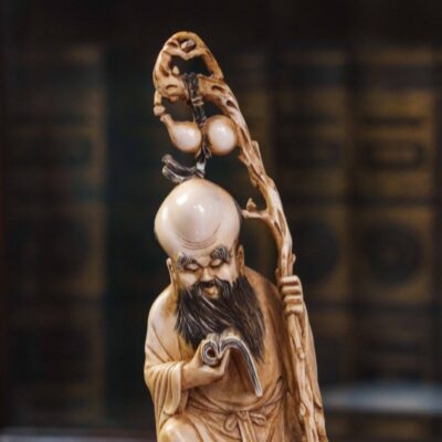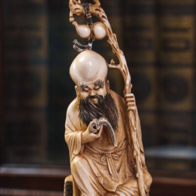 Резная фигура из слоновой кости: «Шоу-син, читающий книгу». Символ мудрости и долголетия