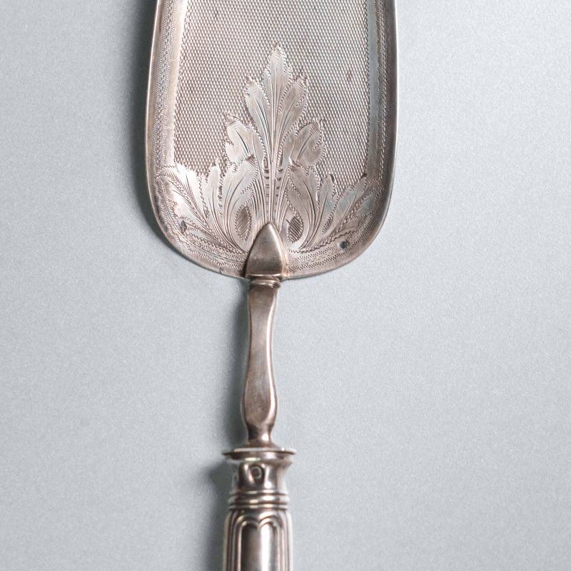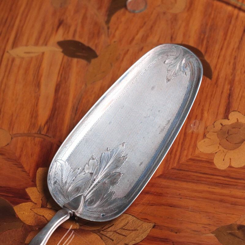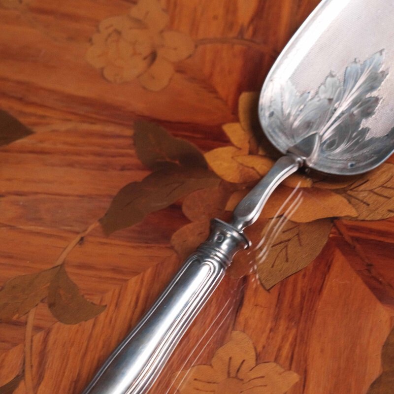 Такая лопатка является не только утилитарным предметом, но и выразительным примером ювелирно-столового искусства Франции, где мастерство чеканки, гравировки и художественный вкус соединяются в гармонии формы и орнамента. Она прекрасно впишется в коллекцию антикварного серебра, демонстрируя дух эпохи «бель эпок» и традиции французского аристократического стола.