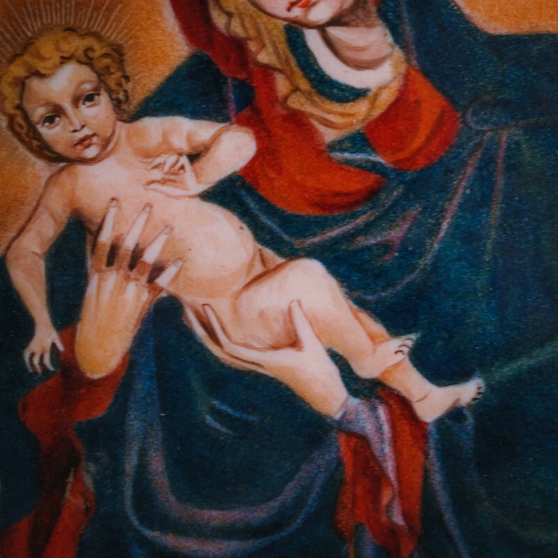 Лицо Богоматери исполнено с душевной мягкостью и лёгкой скорбностью, что характерно для вариантов иконографии «Мадонны Святого Вита».