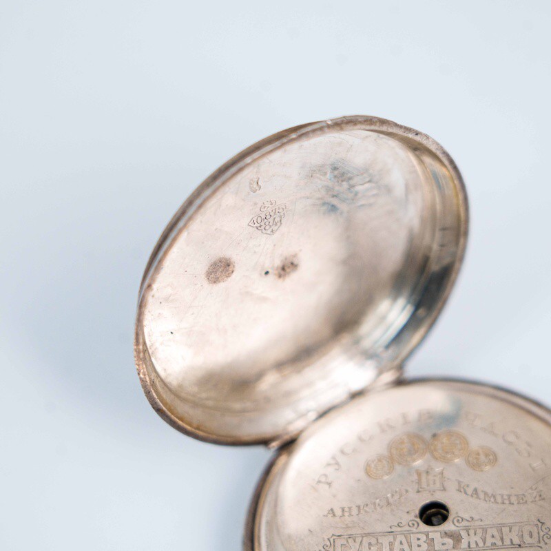 Большинство его часов для России имели анкерный ход и 15 рубиновых камней, что обеспечивало «верный ход» и долговечность. Как видно на пыльнике ваших часов, Жако гордился наградами с международных выставок, изображая медали на внутренних крышках своих изделий.