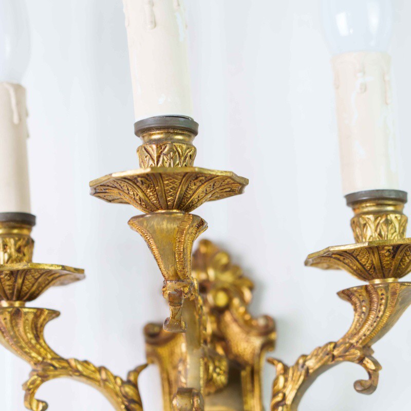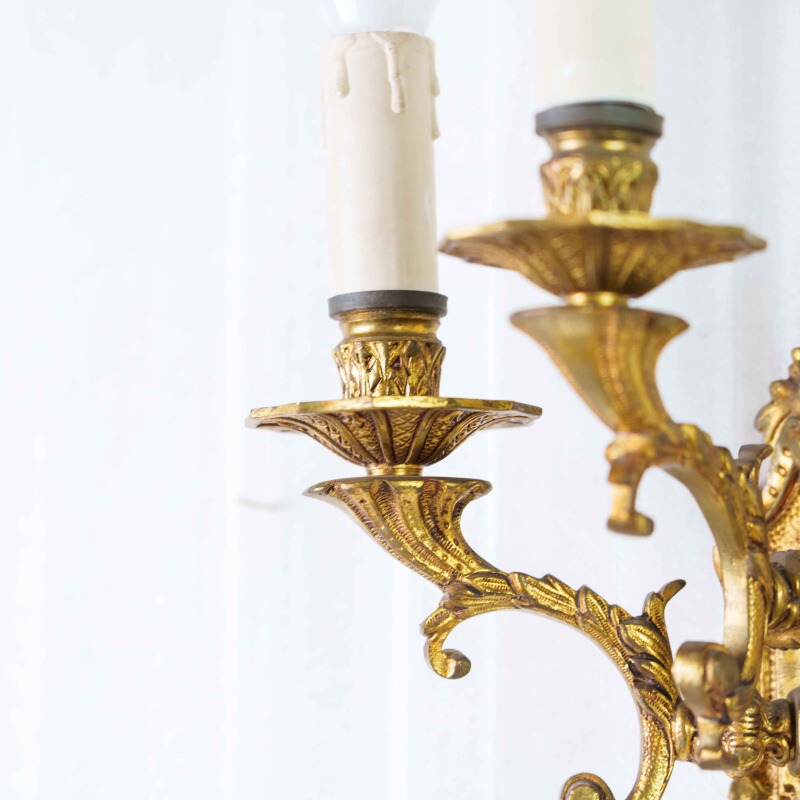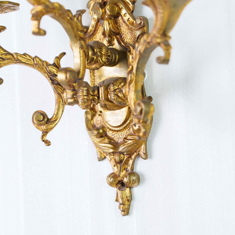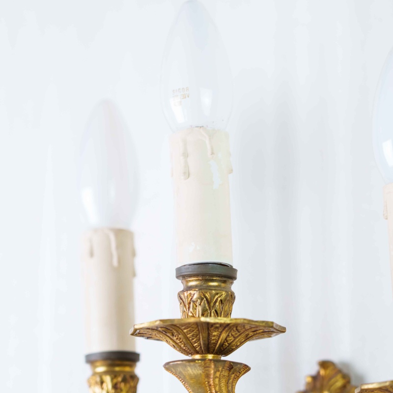 Материал Бронза, позолота. Декор: рельефные орнаменты, гирлянды, стилизация под свечи. Состояние отличное, с лёгкой благородной патиной времени.