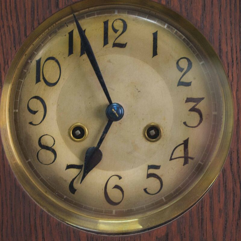 Настенные часы в корпусе из массива дерева, выполненные в классическом стиле первой половины XX века.