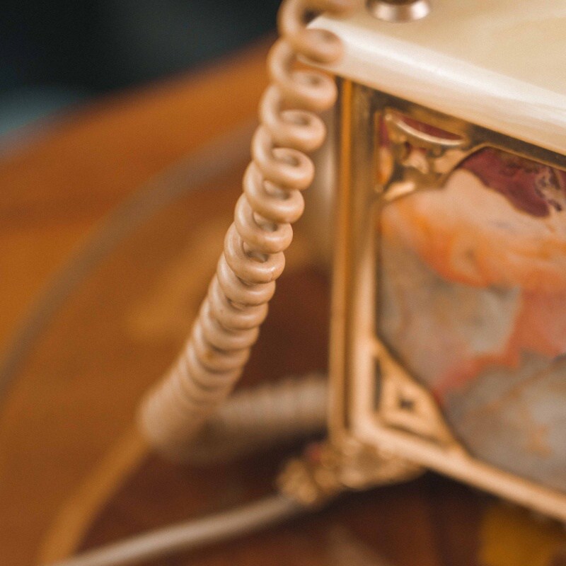 Такой телефон станет ярким акцентом в кабинете, гостиной, винтажном или классическом интерьере, добавив помещению атмосферу роскоши и исторического шарма. Он может служить как самостоятельным декоративным объектом, так и стильным подарком коллекционеру или ценителю необычных интерьерных деталей.