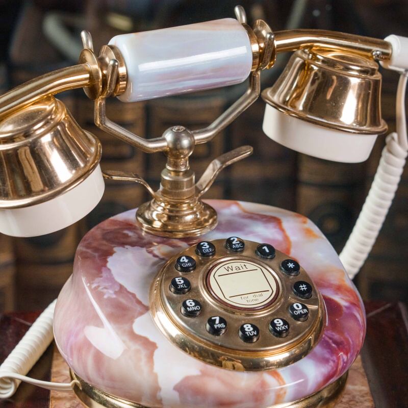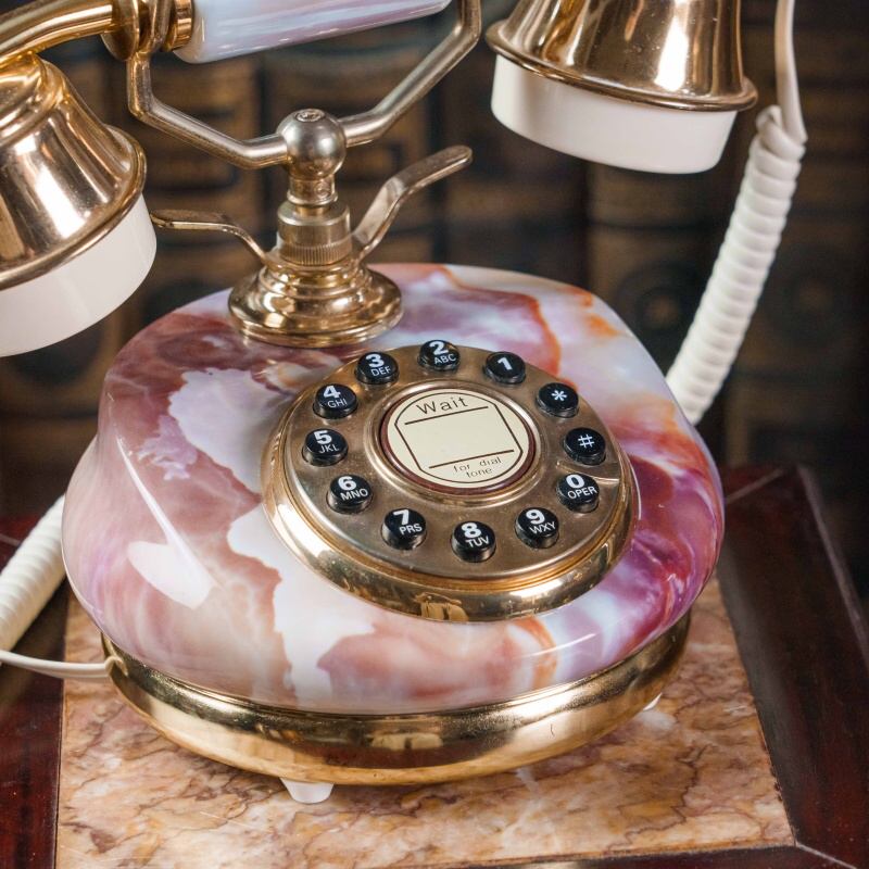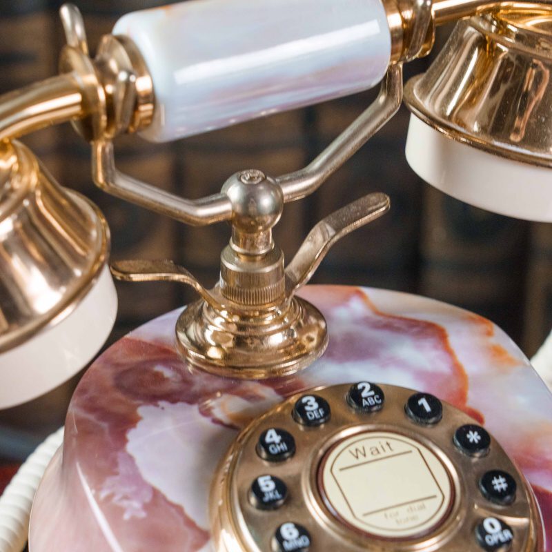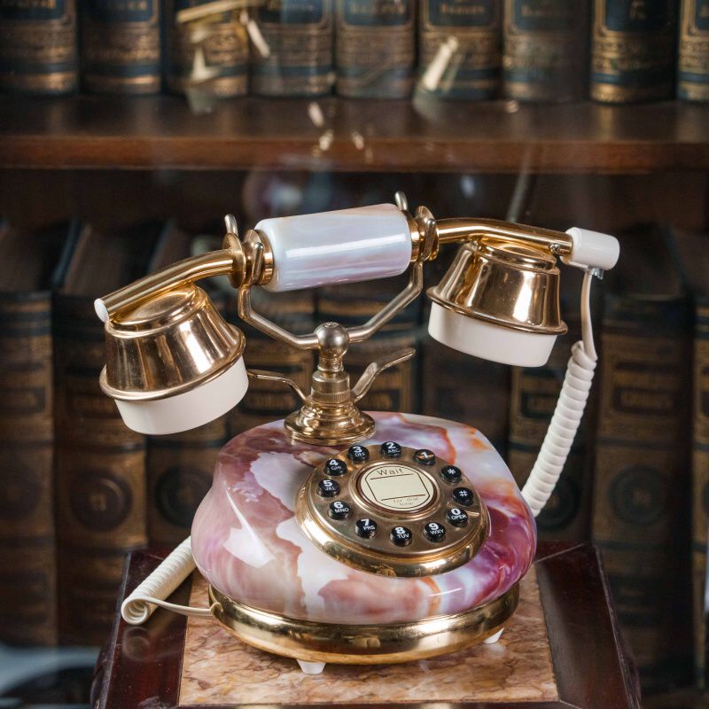 Такой телефон станет эффектным акцентом в кабинете, гостиной или библиотеке, подчёркивая атмосферу старинной элегантности и вкуса.