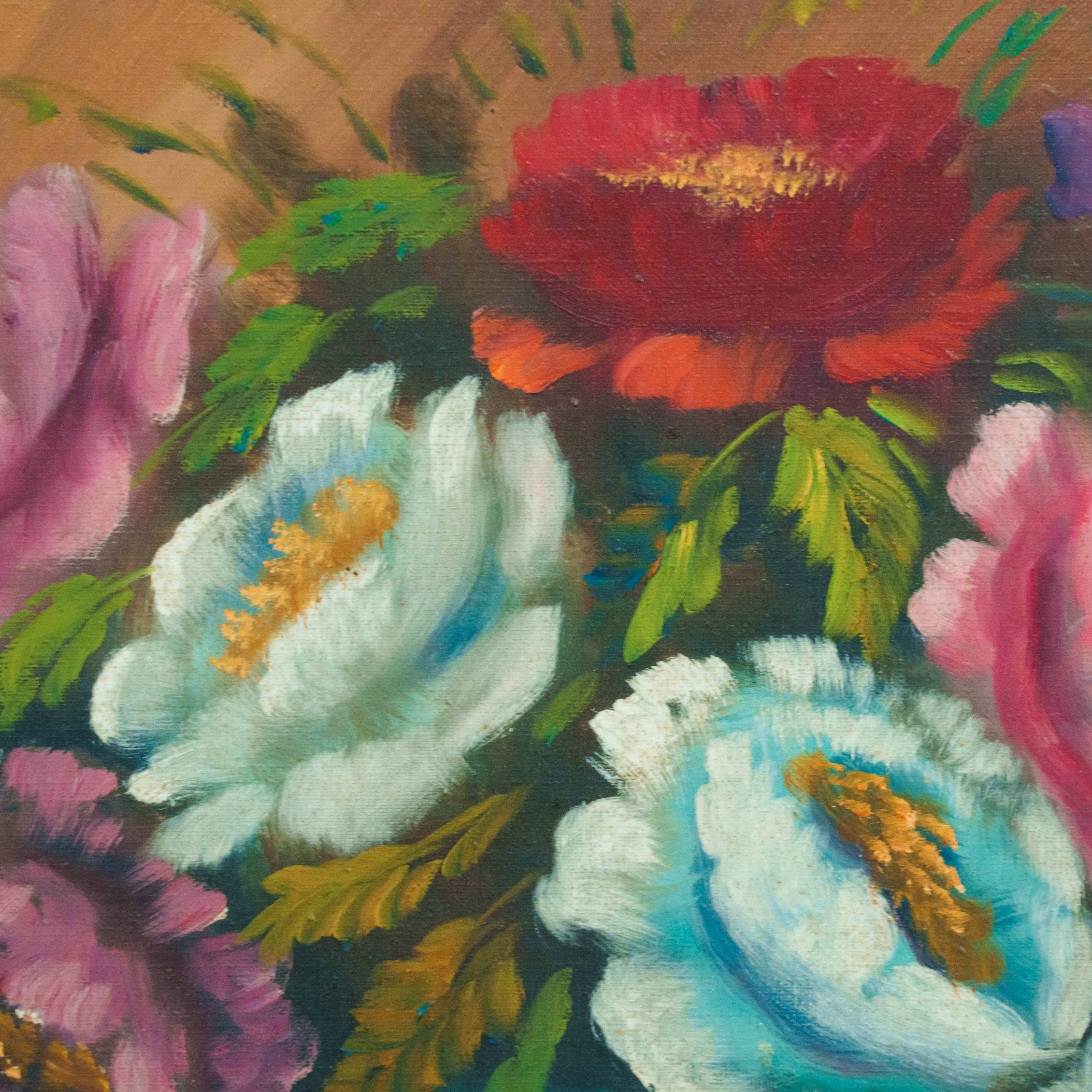 Тёплый, уютный натюрморт в традициях европейской живописной школы. Сочные гроздья винограда, спелые груши и яблоки, дополненные пышным букетом цветов, создают гармоничную и сбалансированную композицию, наполненную ощущением изобилия и спокойствия.