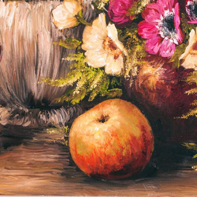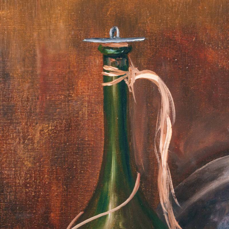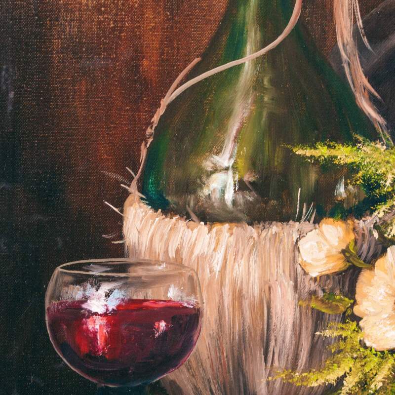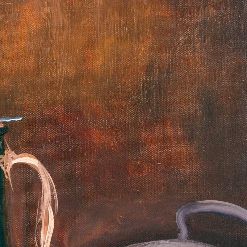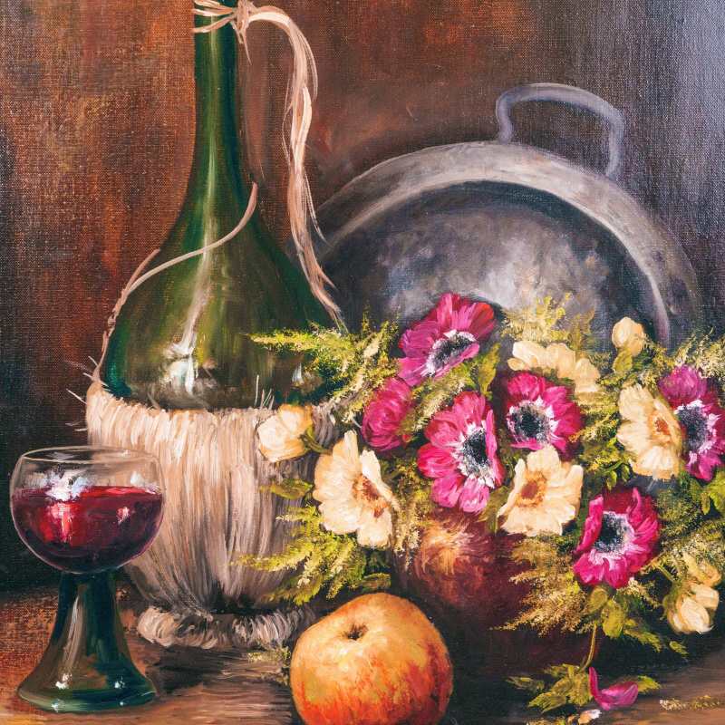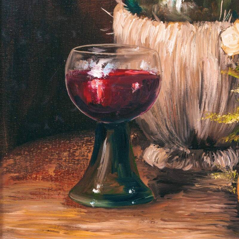 Представлена картина известного немецкого художника Kurt Platen c условным названием «Натюрморт с вином и цветами».