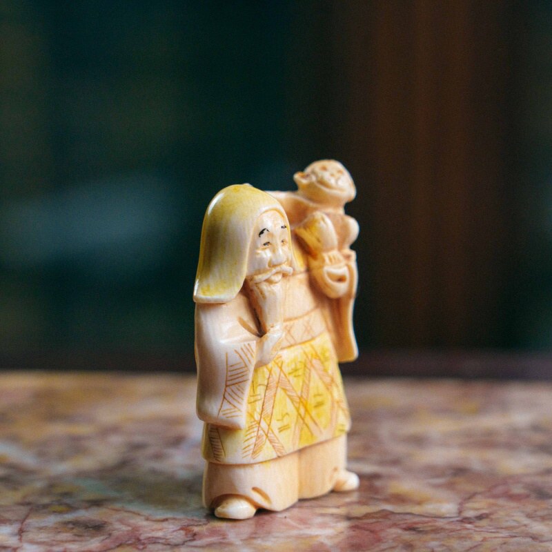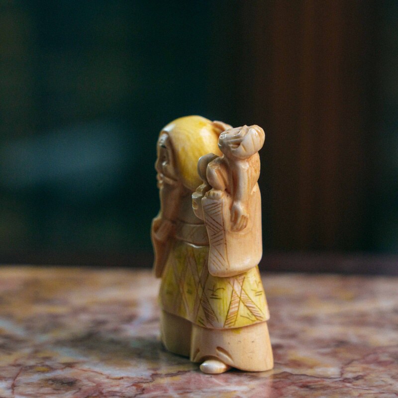 Нэцкэ актер с обезьяной — «сарумаваси», популярная композиция является символом: творчества и театрального искусства. Обезьяна в нэцкэ символизирует артистическую, развлекательную часть жизни, а актёр — свободу передвижения и отсутствие жёстких социальных рамок. В Японии бродячие актёры, как и дрессировщики обезьян (сарумаваси), традиционно пользовались большей свободой передвижения, не платили налоги и не призывались на военную службу.