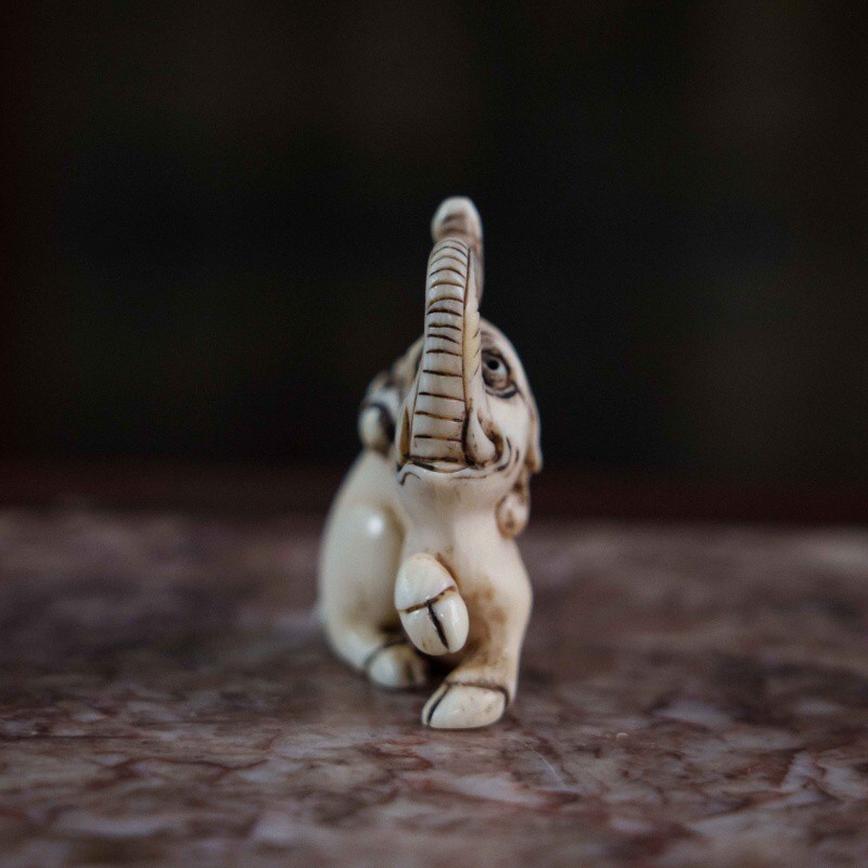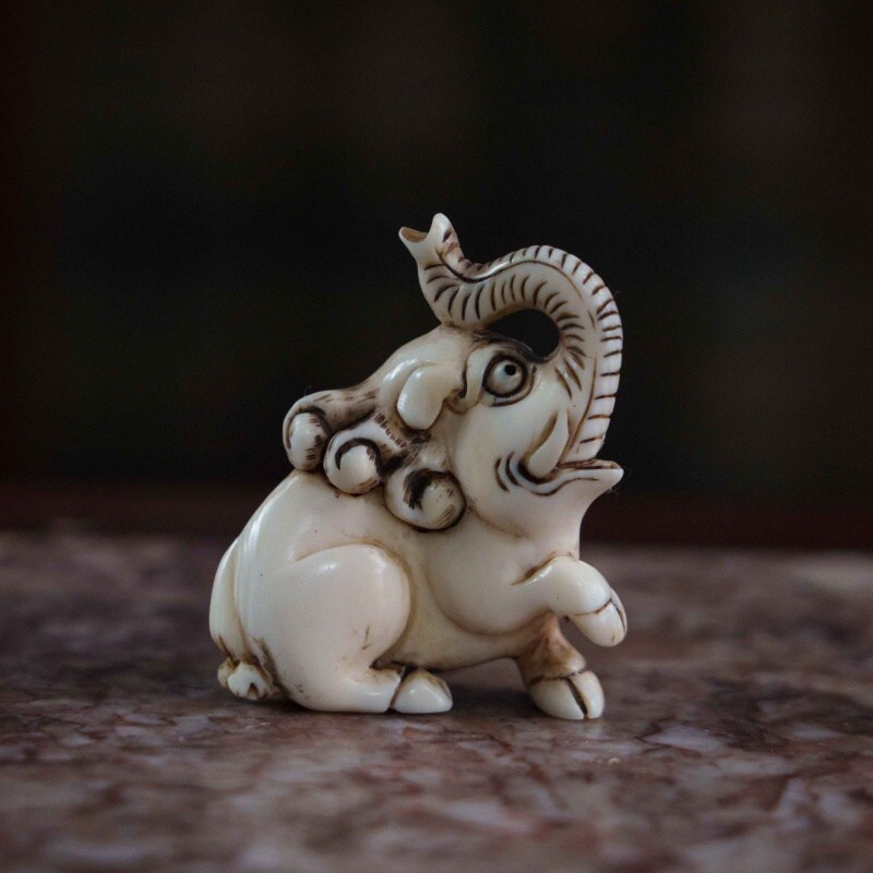 Нэцкэ Баку — сказочное существо, по облику напоминающее медведя со слоновьим хоботом, бивнями, лапами тигра или копытами, глазами носорога, бычьим хвостом и черно-белой пятнистой шкурой. В Японию образ баку и легенда о нем пришли из Китая. Оно считалось существом, которое пожирает дурные сновидения. По народному поверью, проснувшись от кошмара, следовало произносить заклинания: «Баку кураэ!» Считалось также, что оно излечивает от кожных заболеваний. Баку изображен сидящим, с поднятым хоботом и одной передней лапой, что придает фигурке динамичность