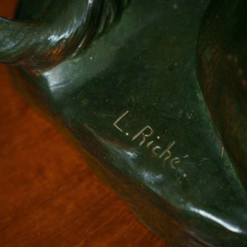 Луи Рише (Louis Riché, 1877–1949) — французский скульптор-анималист, широко известный своими произведениями, изображающими собак, особенно овчарок. Его работы отличались исключительным реализмом и вниманием к деталям, что позволило ему завоевать популярность среди любителей анималистического искусства в Европе в конце XIX и первой половине XX века. Луи Рише родился в Париже в 1877 году. С детства он был окружён миром искусства и проявлял интерес к животным, что в конечном итоге определило направление его творчества. Ранние годы его обучения прошли в мастерской французского скульптора Жоржа Гарньера (Georges Gardet), известного своими анималистическими работами. Гарнье оказал огромное влияние на Рише, передав ему любовь к изображению животных и навыки скульптора. В 1896 году, в возрасте 19 лет, Рише дебютировал на знаменитом Парижском салоне (Salon des Artistes Français), выставив свои первые анималистические работы. Его скульптуры сразу привлекли внимание публики и критиков благодаря реалистичности, эмоциональной выразительности и мастерству. Получив признание в художественных кругах, Луи Рише продолжал активно участвовать в различных художественных выставках и салонах, постепенно завоёвывая международное признание. Луи Рише специализировался на изображении собак, в частности овчарок, которых он изображал с большой любовью и вниманием к деталям. Его скульптуры отличались анатомической точностью и реалистичной передачей текстуры шерсти, мускулатуры и поз животных. Рише уделял большое внимание эмоциональной составляющей своих работ. Его скульптуры не просто изображали животных, но и передавали их характер, настроение и индивидуальность. Помимо собак, Рише также создавал скульптуры других животных, таких как олени и волки, однако собаки оставались его основной темой.