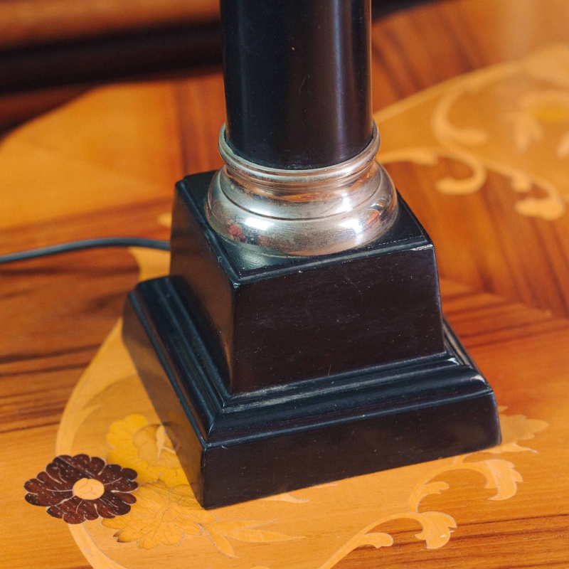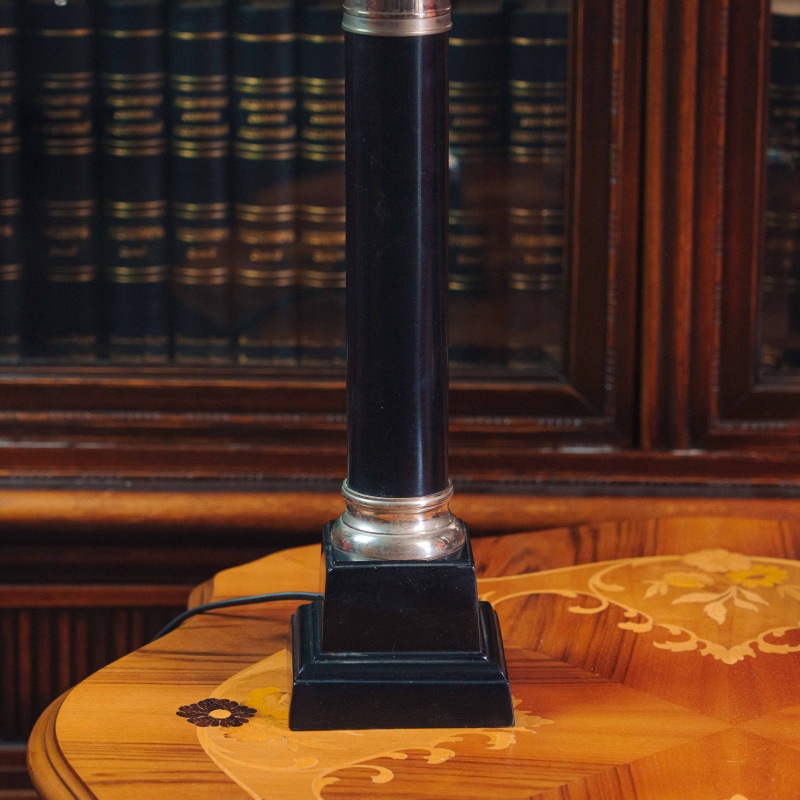 Элегантная пара настольных ламп с выразительными колоннообразными основаниями. Основания выполнены из металла и имеют строгую архитектурную форму, напоминающую классические колонны, что придаёт лампам благородный и сдержанный характер.
