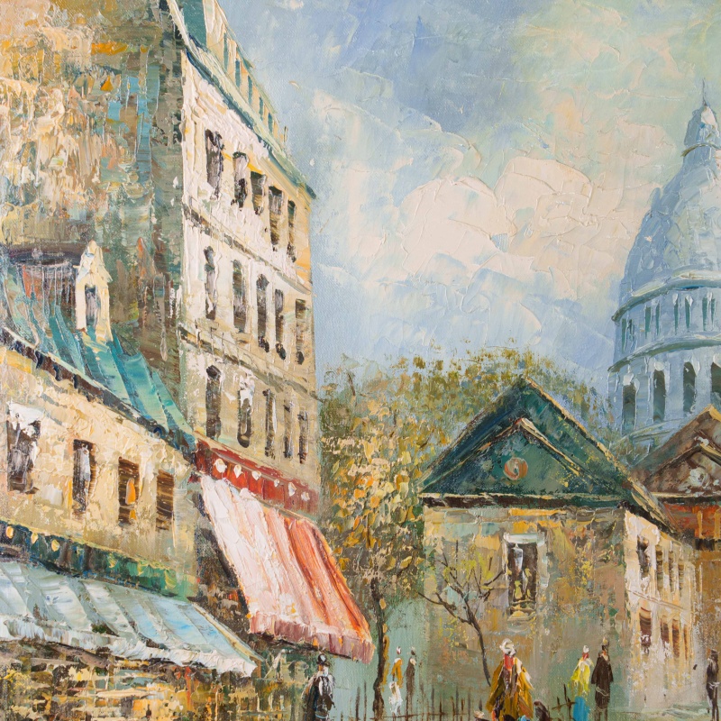 На картине изображена улица в Париже с красивыми зданиями, которые купаются в солнечном свете. Произведение написано в манере «импасто»-нанесения густого слоя краски на полотно, не только применяя кисти, но и при помощи ножа.